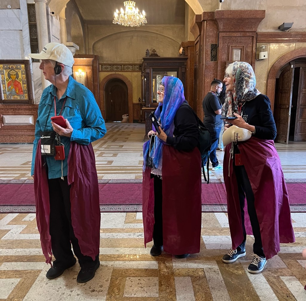 Our spiritual guide was alarmed when we joked about no choice in the attendance of morning prayers on the bus. We were trapped. He had no wish to force anyone. I reassured him I was joking! Chris was very relieved. It was a meaningful part of the experience that added an extra dimension to our explorations. His willingness to engage in discussion with our Orthodox and Muslim guides on differences and similarities across faiths was enlightening.