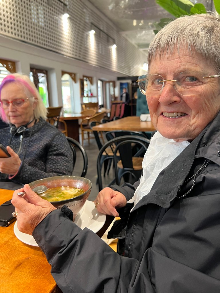 Some exploits of our travels: such as the taxi without an extra seat that didn’t deter the ever cheerful Beryl, who quietly climbed into the boot of the hatchback!