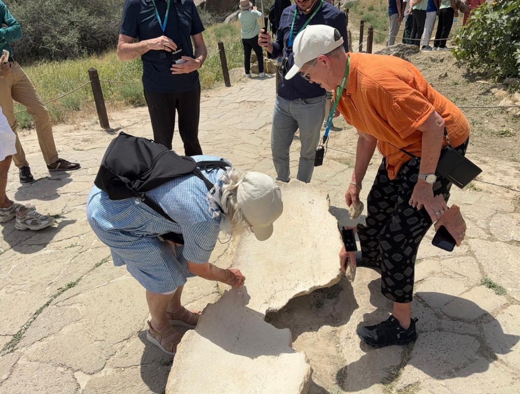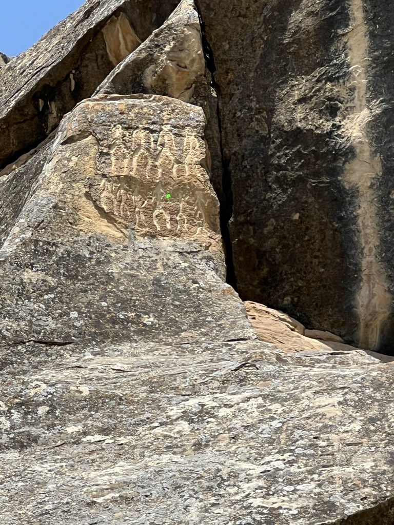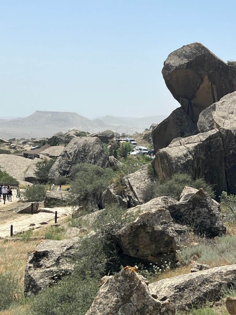 Within the park was another mountain with petroglyphs from ancient inhabitants. Hordes of tourists made this a bit of a chore in the heat but was quite interesting. The Soviets apparently had carved numbers beside the examples which Anne had assumed were part of the inscriptions! We all had a chuckle but you see so many marks made by stone that it was understandable to consider they were some other symbol that just happened to look like numbers to us!