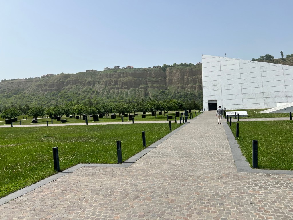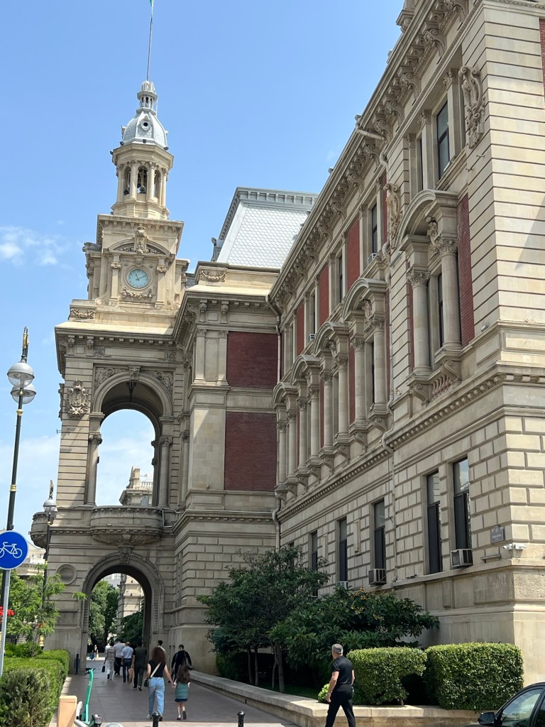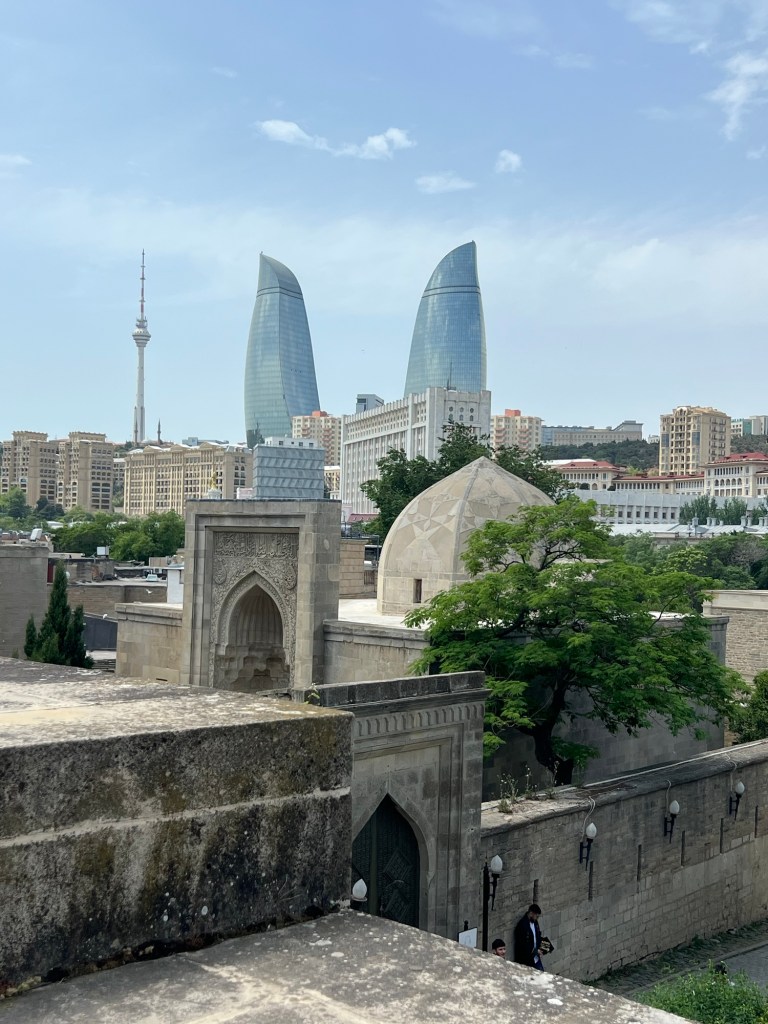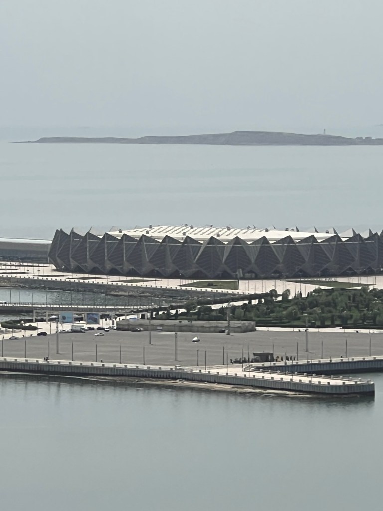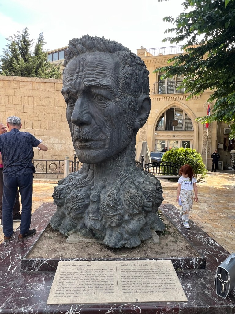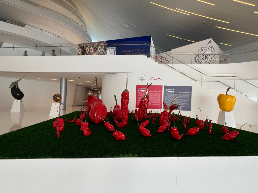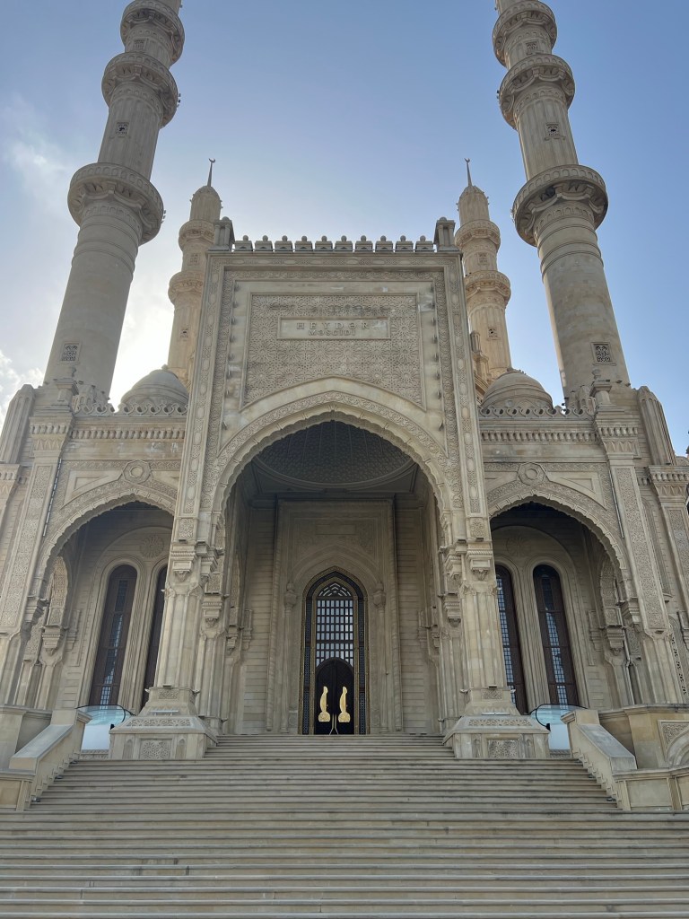 We visited the Heyda Aliyev centre designed by the world renowned architect Zaha Hadid. We had seen this awesome white wavy building as we drove in and around Baku. Entering it was an experience in itself regardless of its contents. It was like being in a cloud. Soaring ceilings, light and white, even the stairs! Not corners just curves. Its design was a direct rejection of the conformism of Soviet rule and Brutalist design. Aimed at accessibility to all and as a space to celebrate Azeri culture and arts.