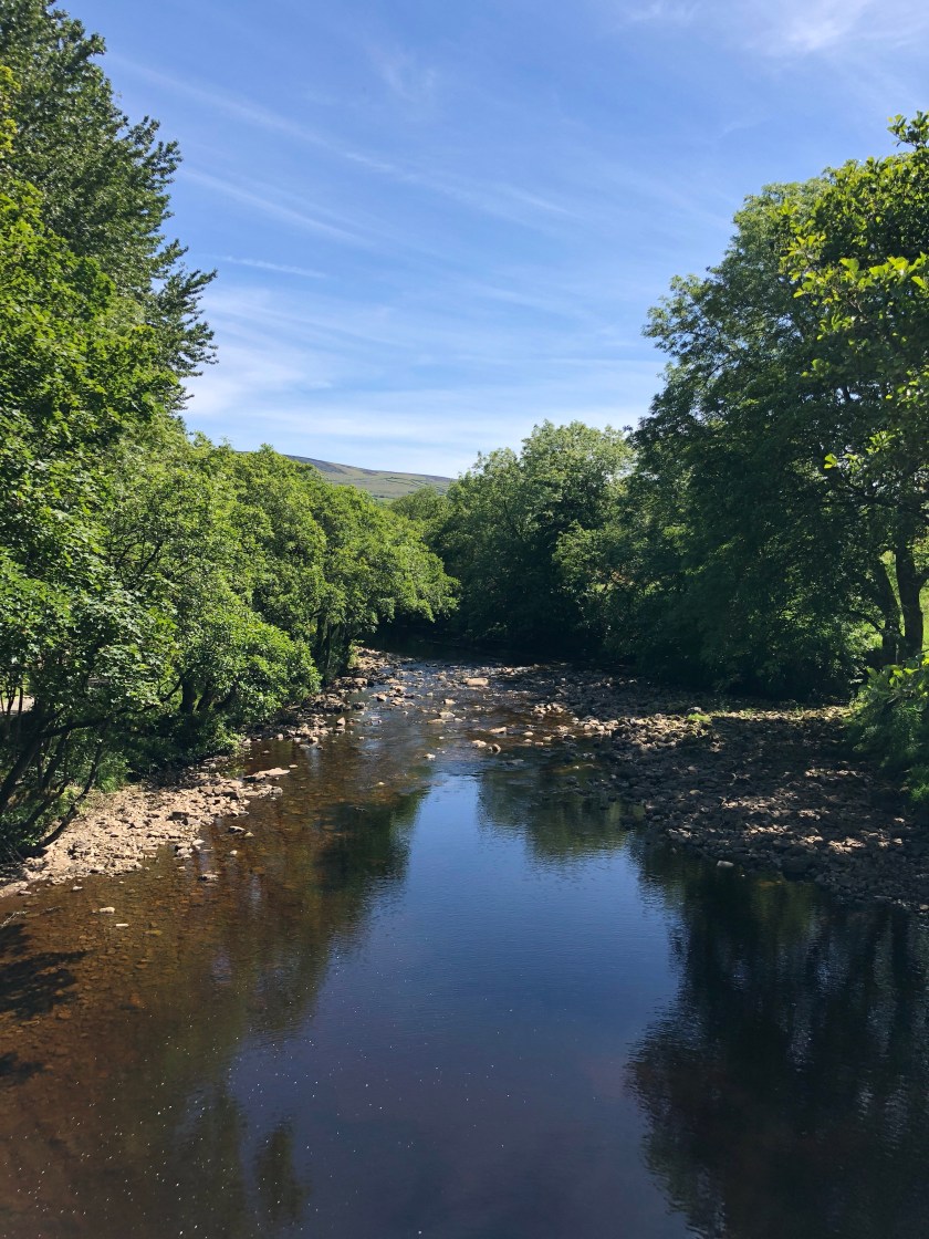 Keld to Reeth was a beautiful walk beside the Swale river which alternated between gentle babbling and quiet pools. The water is a reddish colour from the peat moors. On this warm day it was so enticing.