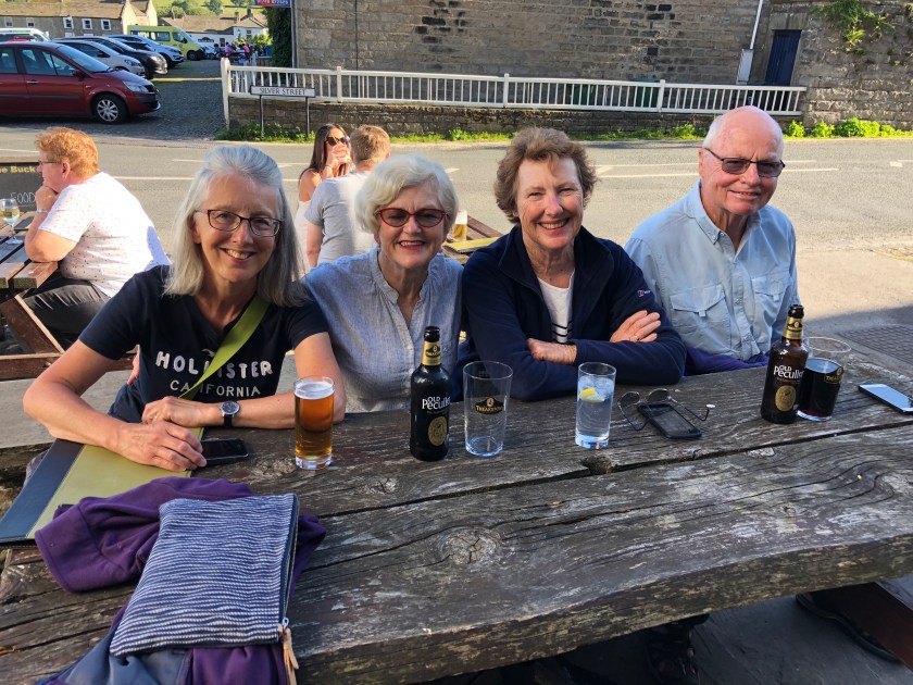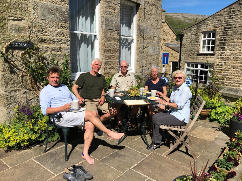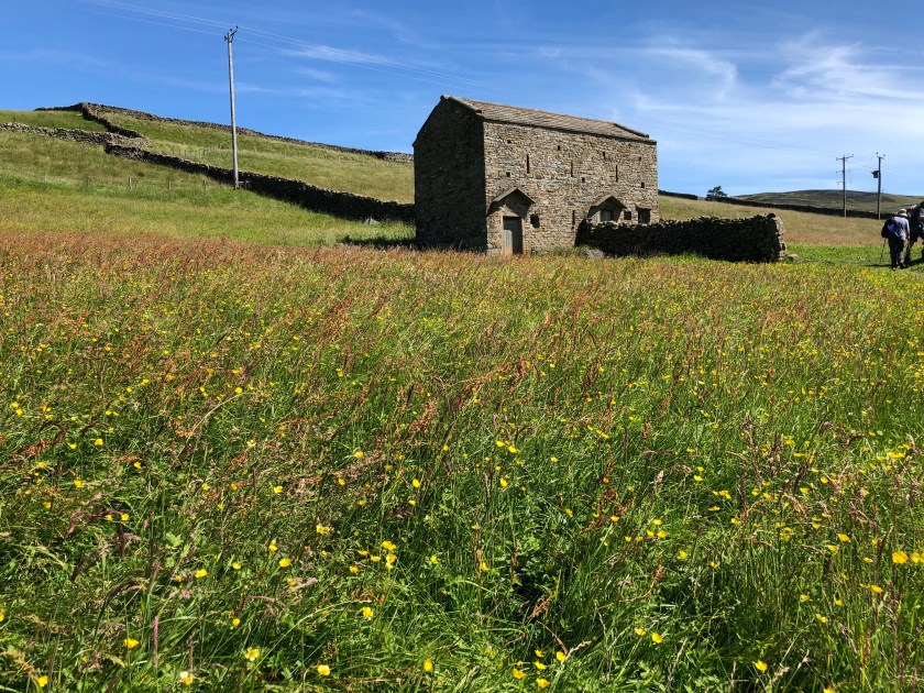 Swaledale was once a thriving lead mining area and in the surrounding hills are the remnants of that activity. Sarah and Kingsley opted for the high route which passes old mining debris but the rest of us took the lower river side route of the Coast 2 Coast and it was an interesting change. We passed through a few small villages, numerous stiles (which are so narrow we are rethinking our generous breakfasts and dinners!), fields of wildflowers, sheep and cattle.
