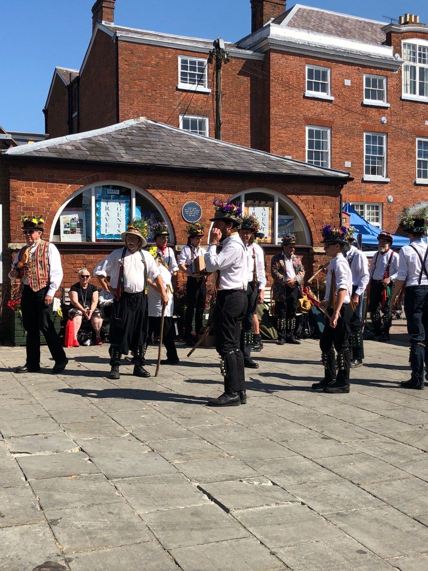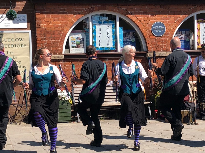 When we arrived the Saturday market was in full swing and their were several groups of Morris dancers performing. It is an ancient folk tradition of men’s dancing with bells on their legs and flowers on their hats, danced with sticks or staves. It is very energetic and requires precision with eye hand coordination to avoid hitting each other on the head! It was very entertaining and the three troupes we watched all had very different costumes. One group was from Lancashire and wore clogs so the beating if the clogs added to the folk music. Apparently the mill workers of Lancashire used to wear clogs.