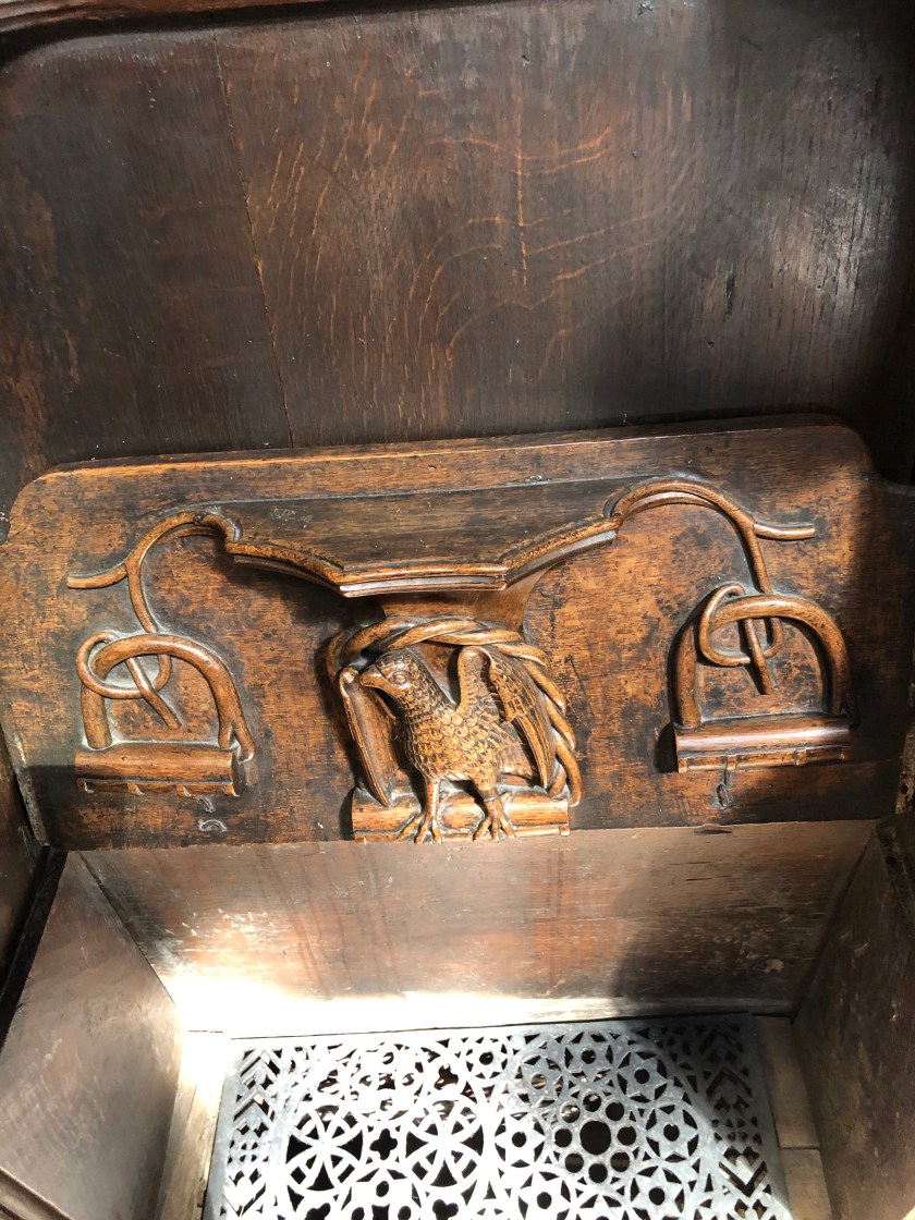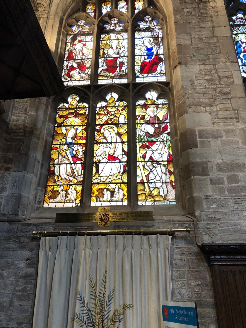 Later I toured St Laurence’s church which had some intriguing carvings on the underside of the seats the monks used to sit on or lean against when praying. It had a most elaborate wall of carvings in the chancel behind the altar too. So many of the churches were ‘cleansed’ of ornamentation during the reformation or sacked during the English civil war but this church had managed to retain its original stained glass windows.
