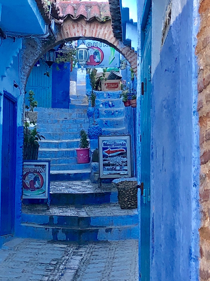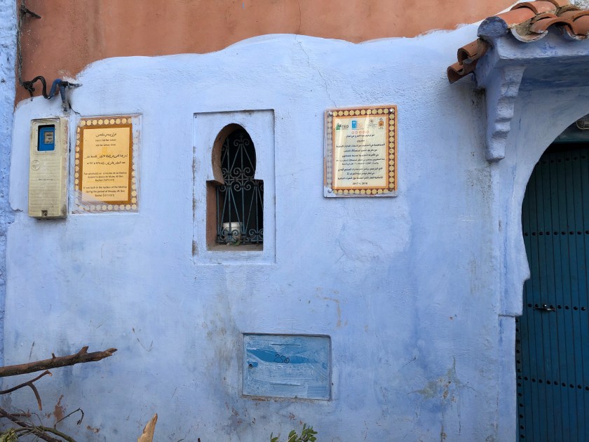 We met our local guide at 9.00 am for a walking tour of this famous blue village. Abdullah was a charming and informative young man. He was passionate about his home town. He explained that Chefchaouen was established in 1471 by Berbers expelled from Andalusian Spain. This spot was geographically central to the three largest towns in the Moroccan kingdom as well as on a trade route for the caravans across North Africa. Many Jewish artisans also came to the town when they were expelled from Spain and they always painted their houses blue. The colour is also used to deter mosquitos apparently!
