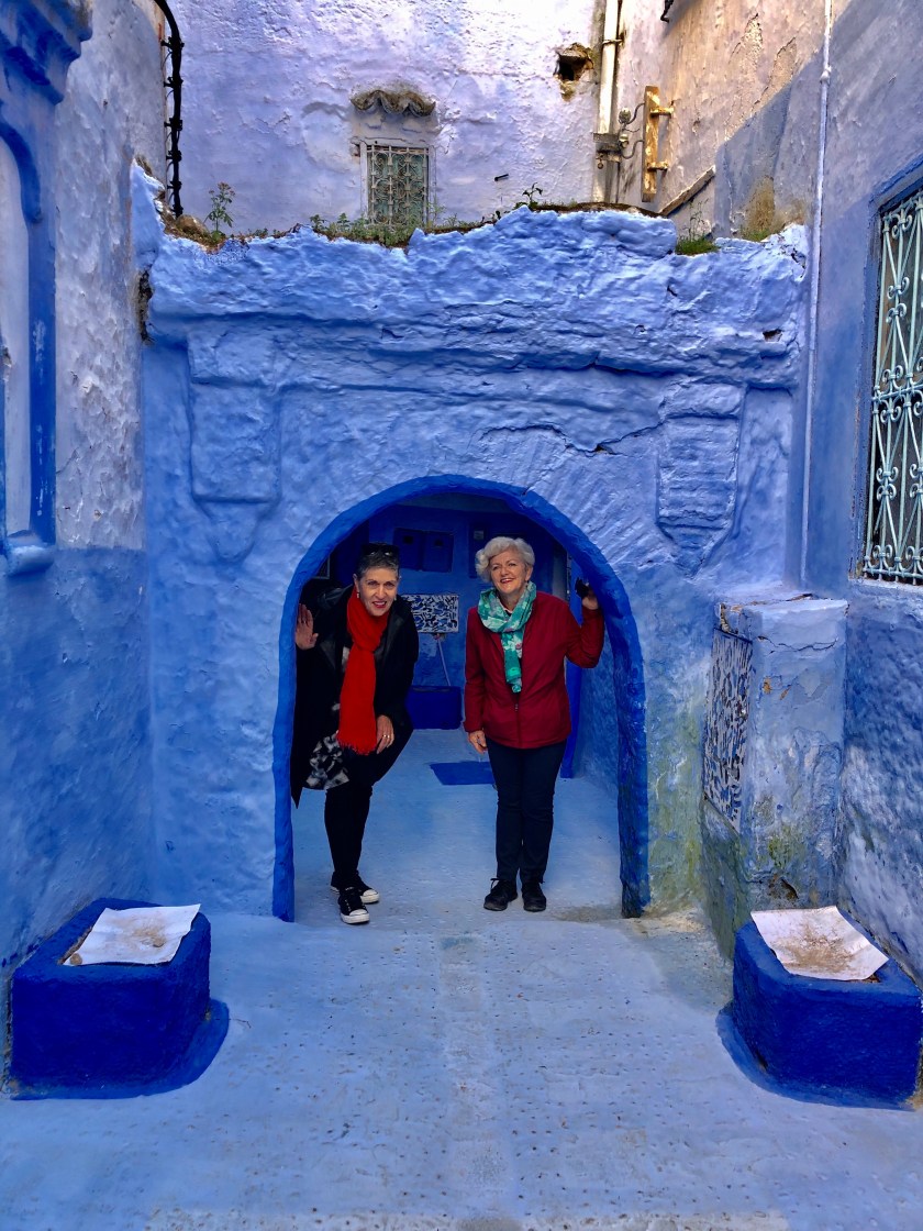 The winding alleys (almost entirely car free) are often painted completely in blue or shades of blue so they seem to glow like sunlight through water. It was quiet because the shops open later and stay open later at night. We came across a bakery and we went inside to see. I thought it was abandoned because of the timber outside but it was for the bread oven. The baker was very happy to show us his small place and insisted we knead some rolls of dough. Mary used to make bread so she was pretty expert but mine wasn’t so round. Every area has its own baker and small mosque within the city.