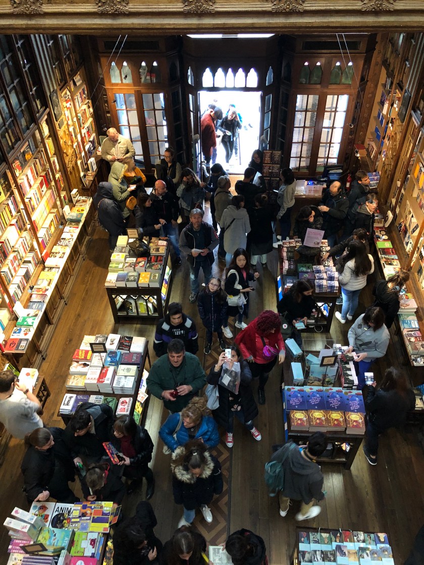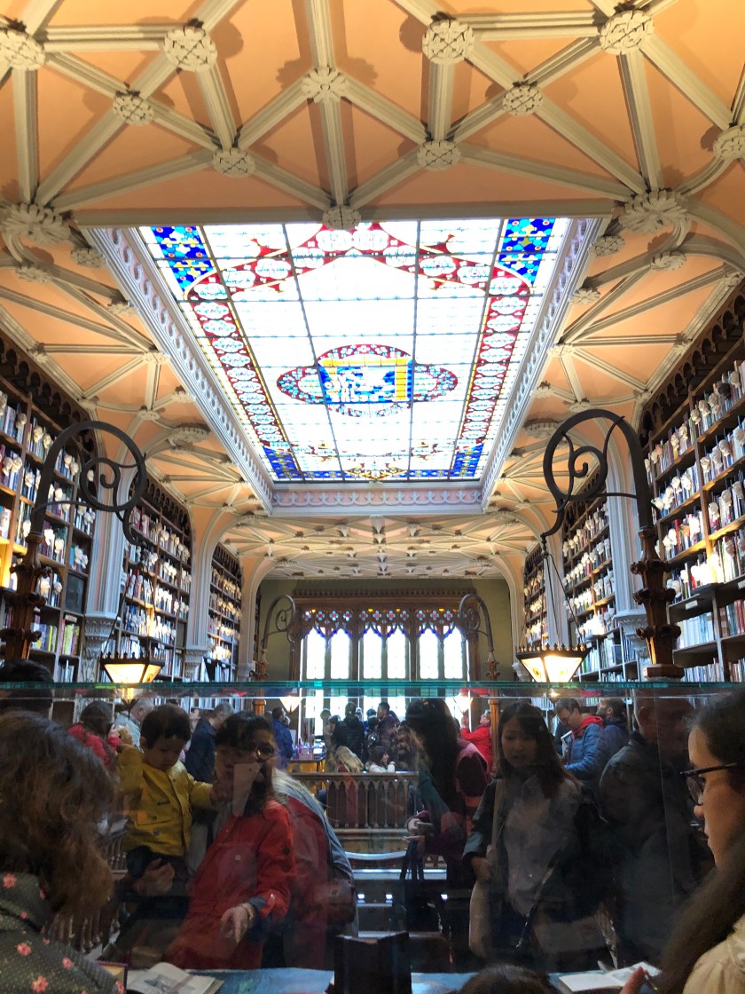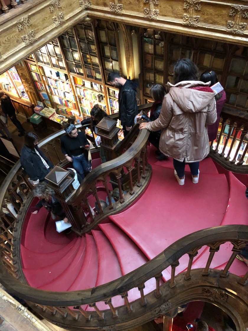 When we arrived at the bookshop there was already a long queue, even though it was wet. We resigned ourselves to waiting this time and played a geography quiz while we waited. We had got there about 8.45 and the shop didn’t open till 9.30 am so we were shocked at the queue that continued to grow while we waited. Eventually a young woman in a Harry Potter cape walked down the queue telling us that there was no entry without a ticket and we needed to buy one. This was news to us ( we were so naive!) . Anne and Irene went off while Bill and I held our space and the space of the young man in front of us. Eventually we had to let ticket holders go in front of us and the girls finally returned with tickets. They had had to queue at the ticket office. By now the queues was two blocks long behind us! What an amazing marketing ploy they have. Apparently J.K? Rowling had lived in Porto for some time and had based the library in Harry Potter on this book shop. That explains why there were so many people .