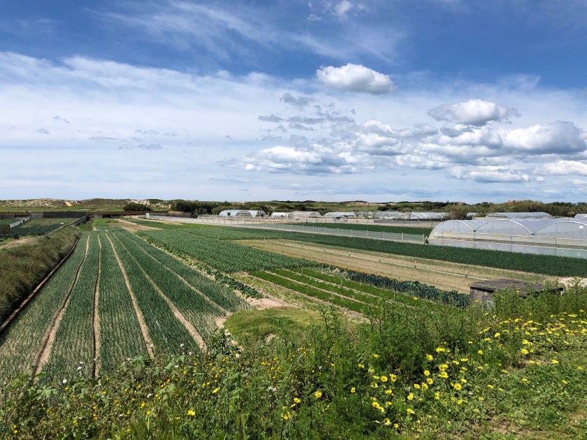 We walked through market gardens that were separated from the sea by a golf course. There is no forest or wilderness except the beach.