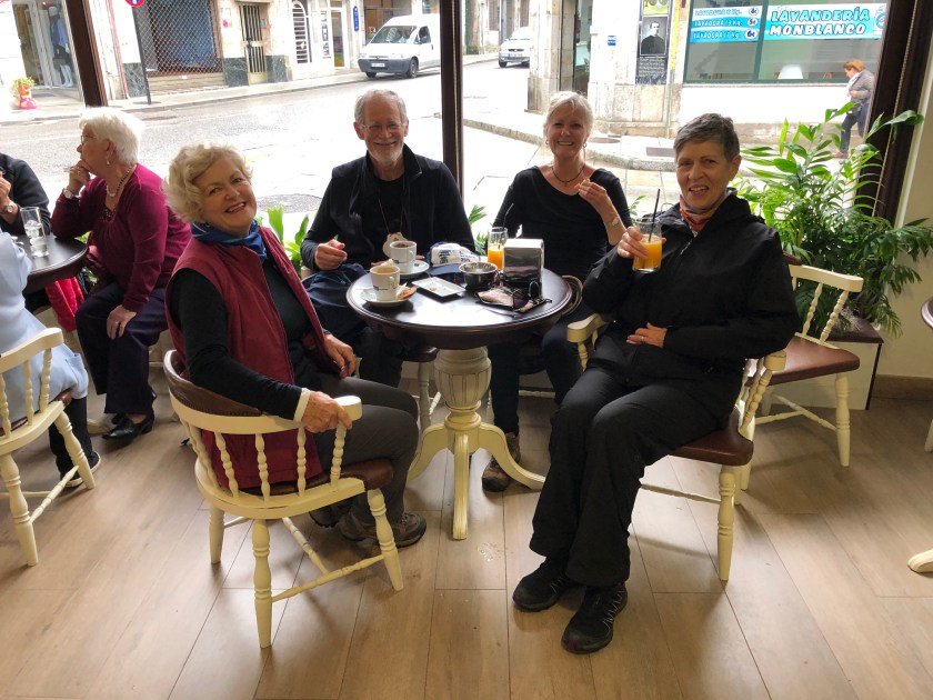 Oia is only tiny and very exposed to ocean breezes. The wind was blowing so hard you could hear the whistle and howl around the windows of the hotel. Our host at the hotel Raiña was deaf. He used the phone to communicate with us quite efficiently. By the time we got settled we were all cold. Fortunately we had good heating and managed to dry everything overnight. We had a pilgrim menu because we couldn’t bear to go out in the weather again. The waitress was also deaf and with hand signals and lip reading we all managed to get what we wanted for dinner. It was a simple but tasty meal though the wine was a bit fizzy!