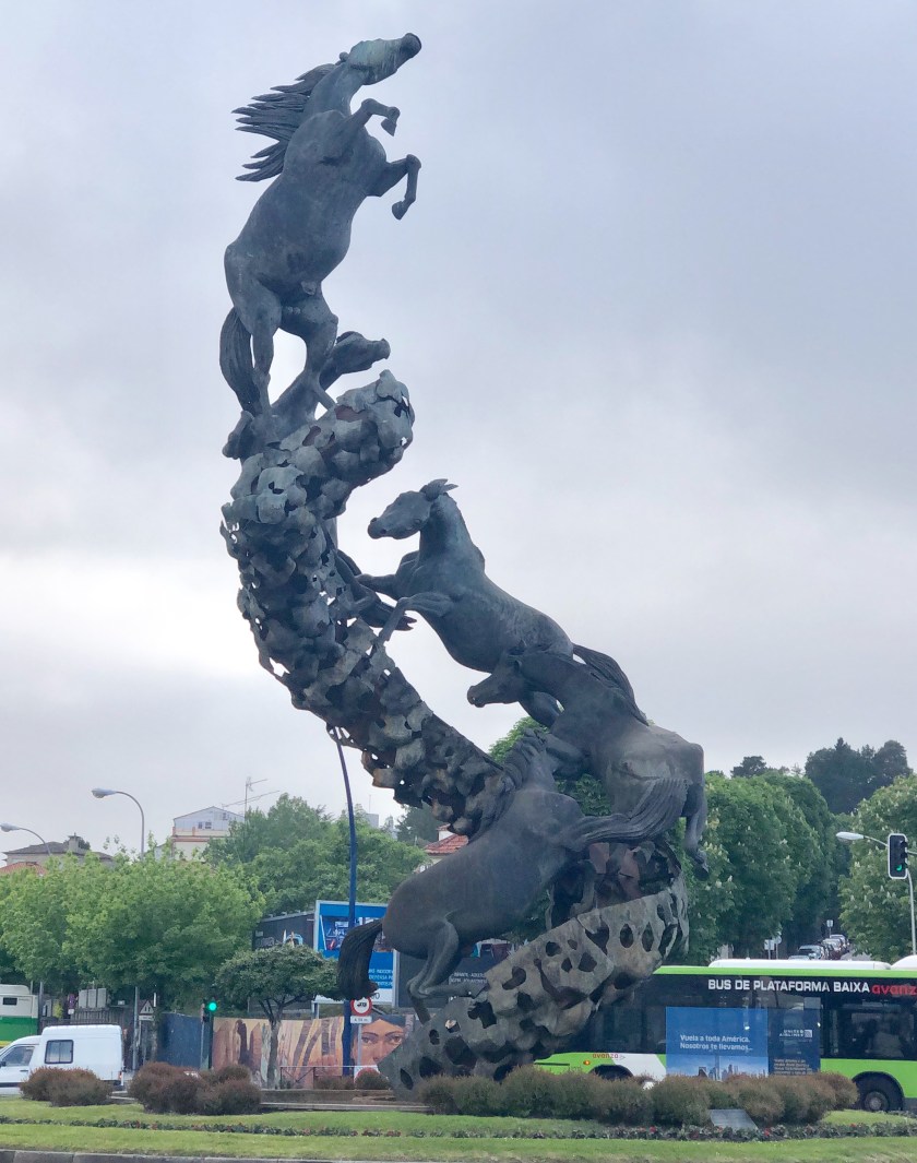 We are not in the old part of town here in Vigo so it is hard to see its charm. It seems more like a working city. It is one of the largest provincial towns in Spain that is not a Capital of a region. There was this quite arresting statue in the centre of a roundabout as we walked out for dinner. The sculpture is of five horses ascending on a waterfall driven by an intrinsic energy. The sculptor Juan Oliviera is renowned for his horse sculptures and is known as “The Lord of the horses”.