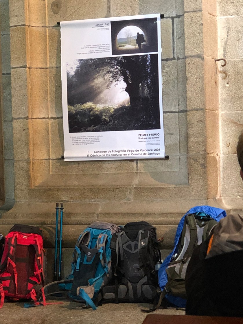 Here pilgrims could come straight in from their walk and many had their certificates in hand too. It was a very moving service initiated by a nun singing Latin hymns with the purest voice. Quite angelic. The service was conducted in Spanish and the countries of pilgrims that had arrived that day were announced. It is very moving to here all the countries named and the prayer for peace in our world. It underlines our common humanity and what unites us rather than our differences. Anne and I took communion and I started to cry. I felt so overwhelmed with emotion I had not anticipated. Even Bill and Irene found the service moving.