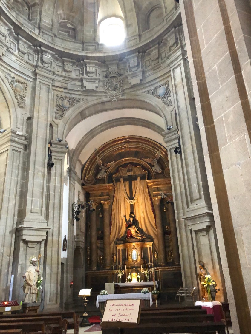 The day was grey and wet and after our first porridge for weeks we finally got ourselves organised to attend the Pilgrims’s Mass. While the Cathedral is undergoing renovation the mass is being held in the Church of San Francisco. It is a beautiful church of course but certainly not with the grandeur of the cathedral or the spectacular Botafumeriea.