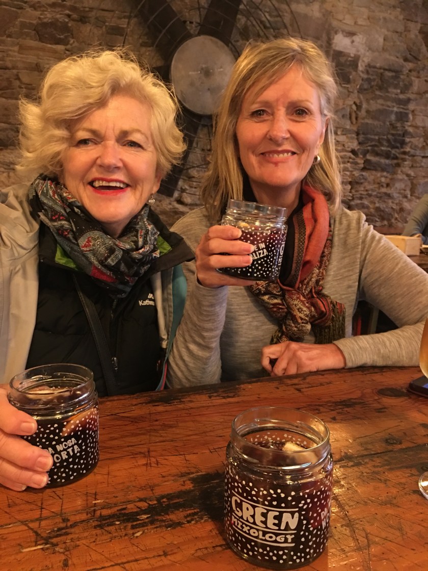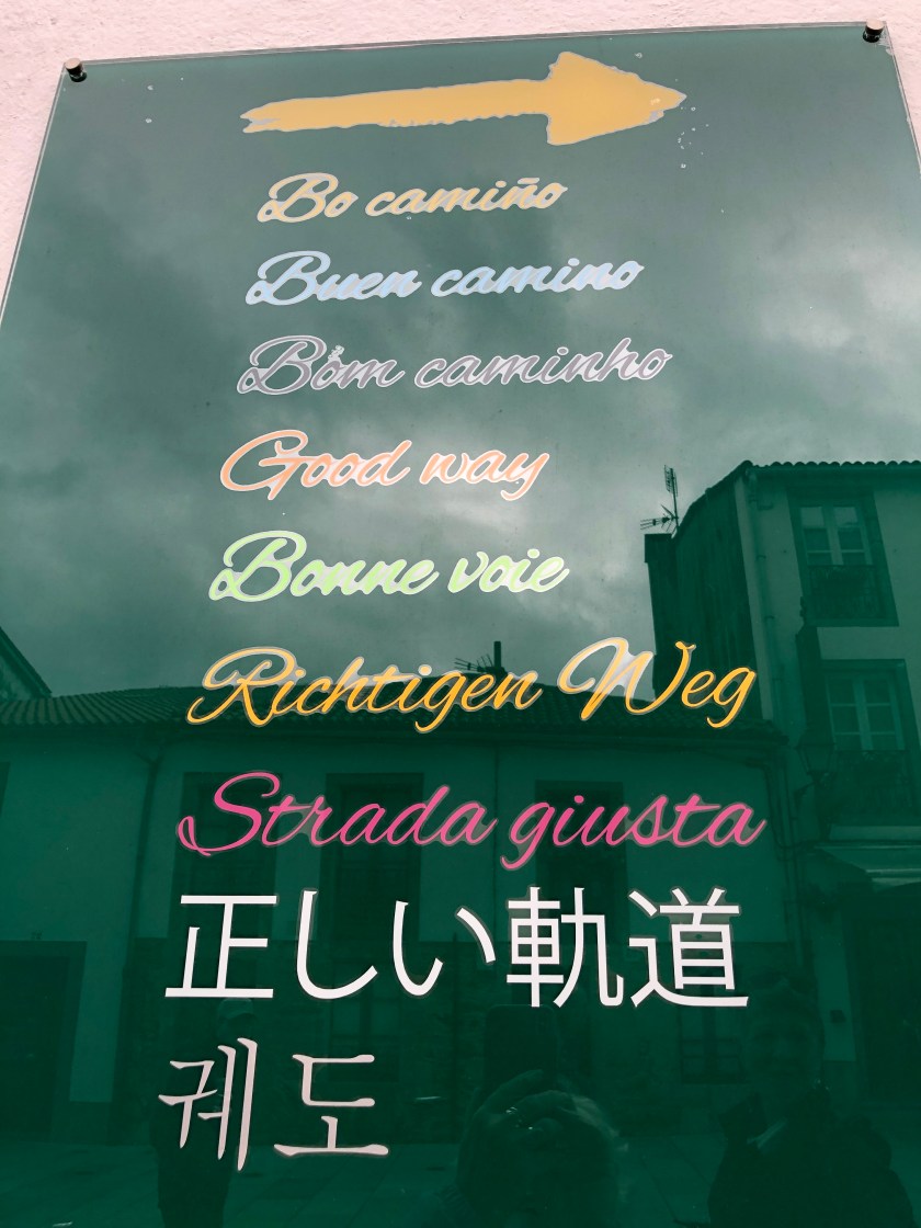 Recovering composure we finished by lighting candles for our families and then setting off in search of the office for pilgrims to get Anne’s dual pilgrimage badge. Because she completed the Kumano Kodo- Kiri-Tanabe to Kumano Hongu Taishi -Kumano Nachi Taisha in Japan when we all walked together and now the Portuguese Camino, she can be acknowledged as a dual pilgrim. Irene and Bill were eligible also but were unable to find their Japanese Credencias before leaving. The instructions given to us to locate the Pilgrims Information Office were difficult to follow. Even the GPS was bamboozeled. After completing a circuit of half the old town we eventually located the place! It was an ordeal in its own right! What was just as amusing was the number of other pilgrims all trying to follow their phones. We laughed at each other as we all passed like dots in Pac-Man. The old town buildings were throwing out the GPS signals. Anne and I had our photos taken and recorded on the register here in Santiago. What was most galling was that we had been within 5 minutes of the office before we started to look for it!