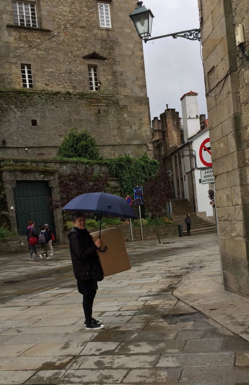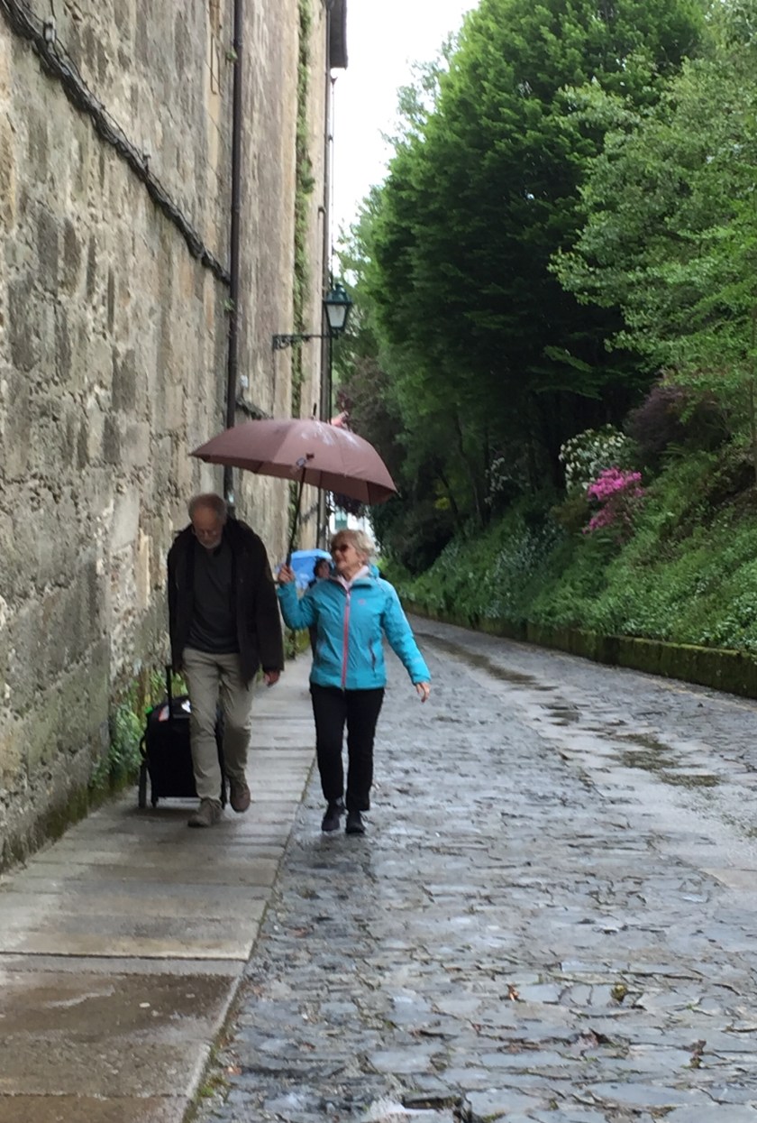 Spanish post near the pilgrims office were amazingly helpful and with the box packed and weighed, paperwork completed, postage paid we were free! That required an appropriate celebration and we finally went to the Parador for a celebratory drink. We felt like frauds when we turned up with an empty suitcase and the doorman rushed out to assist. When we explained he laughed and happily placed the suitcase in luggage storage while we had a drink.