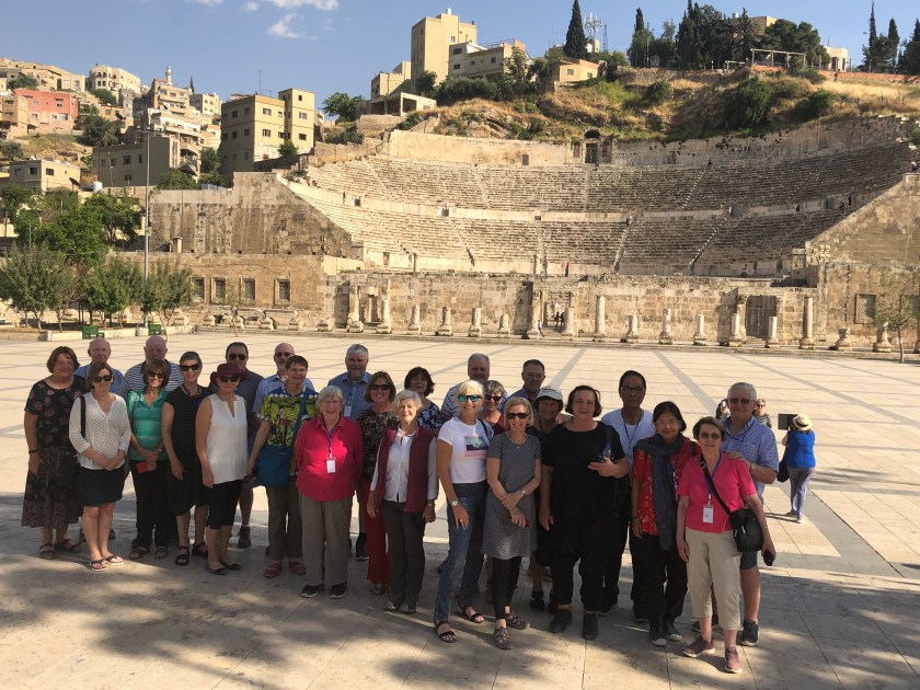 Once back in Amman we began a tour of the city. We visited the Roman amphitheatre, the acropolis, Pillars of Hercules, and from a vantage point looked over the oldest part of Amman where the houses might have 100-200 steps for access. As Amman is built on many hills the houses have crept up the hill. We wondered how they would deal with a fire because there were hardly any lanes to access the houses.