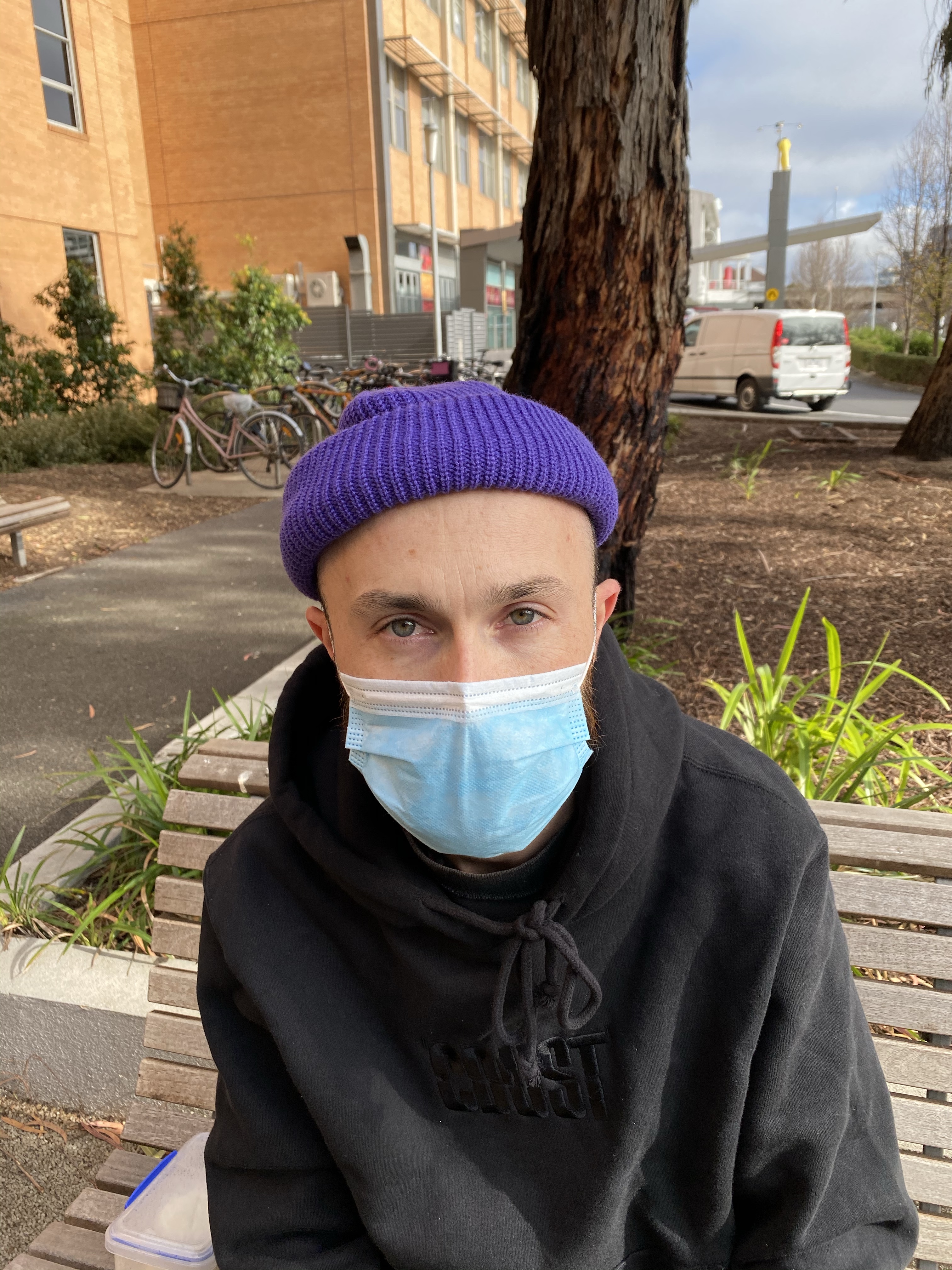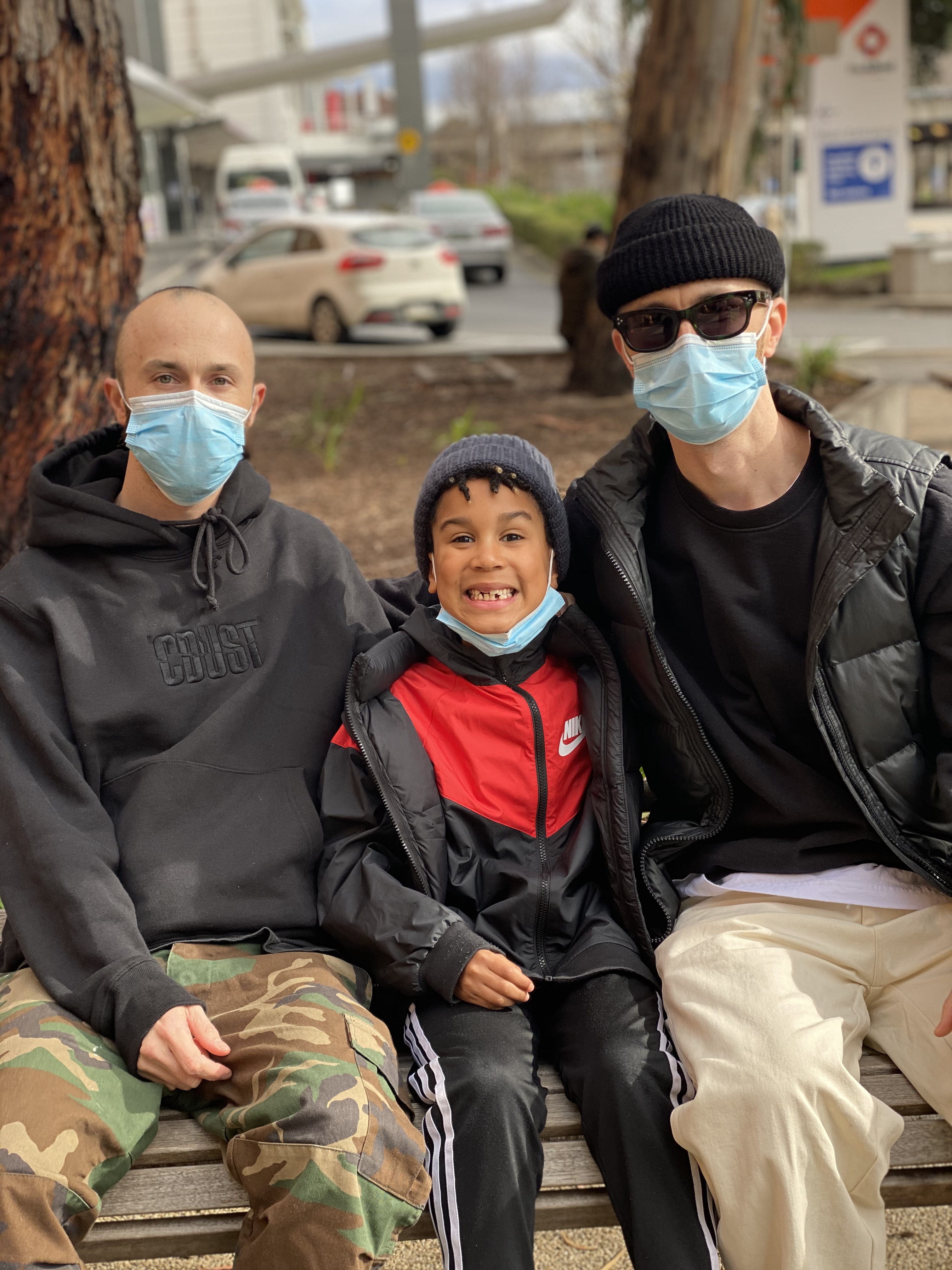Ziggy came too and was treated to some of the lolly snakes that a friend had sent Nick. He showed off his now higgledy, piggledy teeth with glee. He is losing teeth quite dramatically now and Nick was worried he is going to need braces. Jonathan and Nick talked business and appraised a new beanie they are thinking of adding to their Common-Dust clothing range. It seemed like a normal time. Nick bemoaned his thick beard which he loathes and wanted to shave his head. He looked tired and a bit pale but still with the magic smile. There was the usual banter between the three of them and then it was time to leave. Despite social distancing requirements we all hugged him hard.