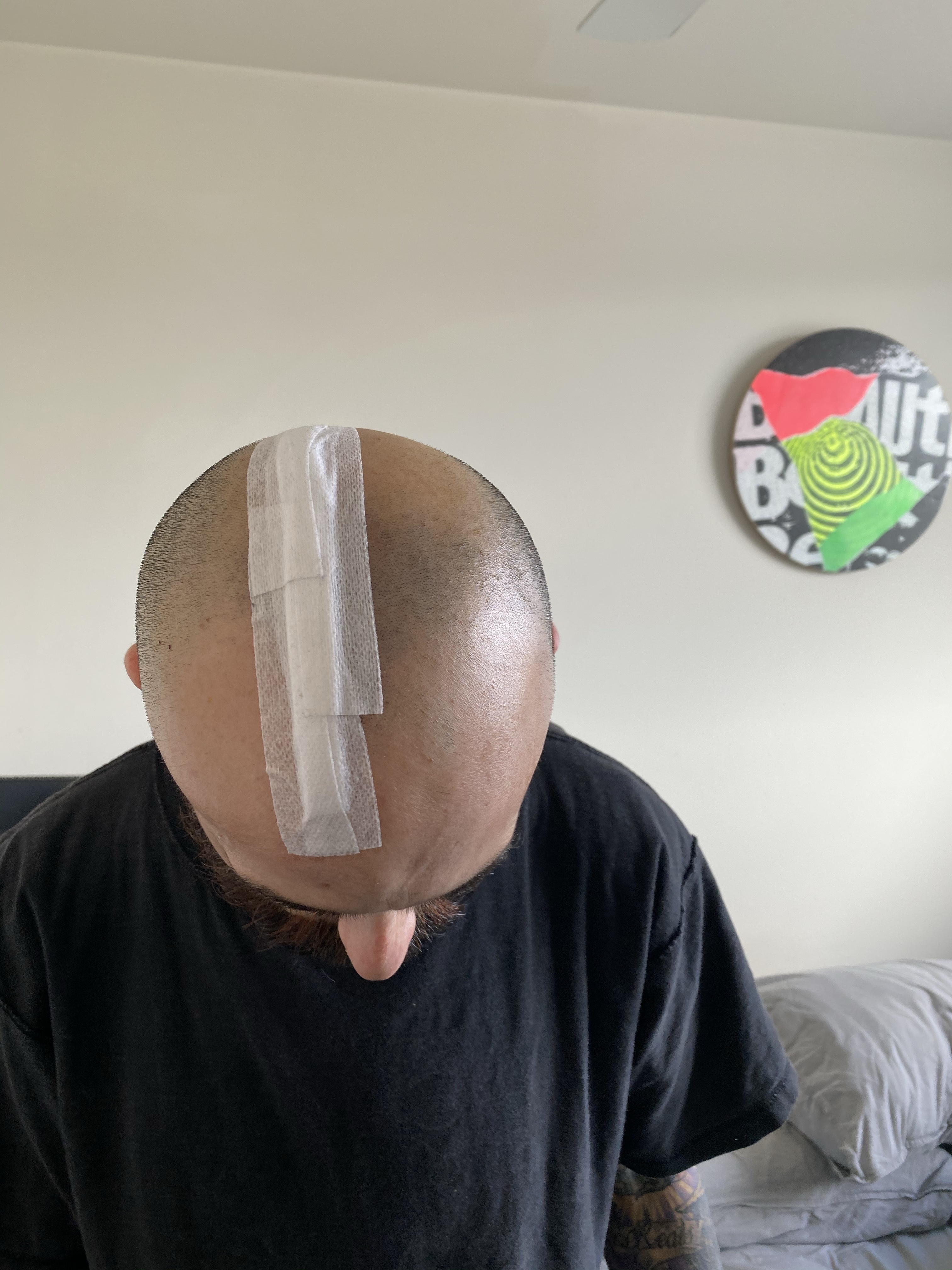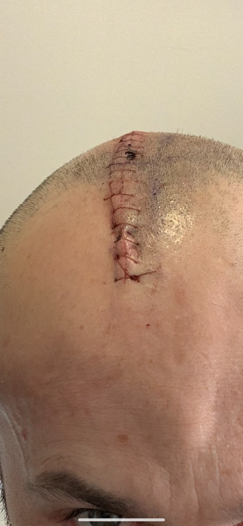 Anyway he had the whole AVM removed and a further Angiogram the day after the surgery confirmed that all was gone. He has had a piece of his skull removed and replaced with screws which he said he saw on the angiogram. His scar is quite impressive and only dressed by a thin strip of bandage. Nick has got a sore head but otherwise physically he is making a good recovery. His foot, hand and shoulder are all more responsive and he has exercises to follow for rehab. By Saturday he was allowed to go home! I was quite shocked but Nick was thrilled. He had hit the wall over hospital food and his new room mate was very unpleasant and invasive. Nick was very relieved when he woke up and felt like himself. He had been afraid his personality might change.