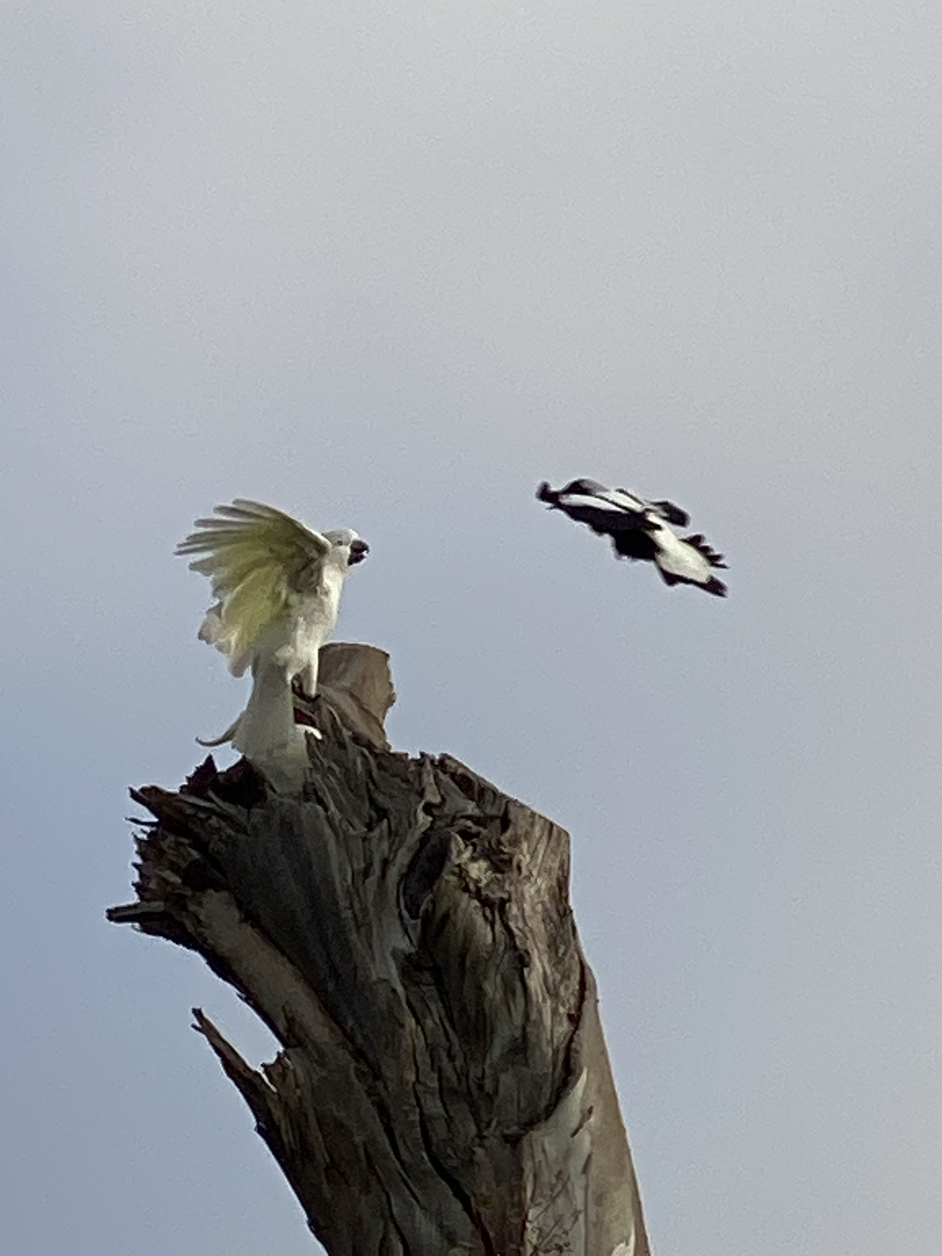 I have been taking photos on my walks and on one day I captured a Cockatoo and a magpie fighting for the top of the tree. I was thrilled with my action shot. In fact I have been quite motivated to capture the different light during the day or action at the local park and my endlessly changing view of the city skyline.