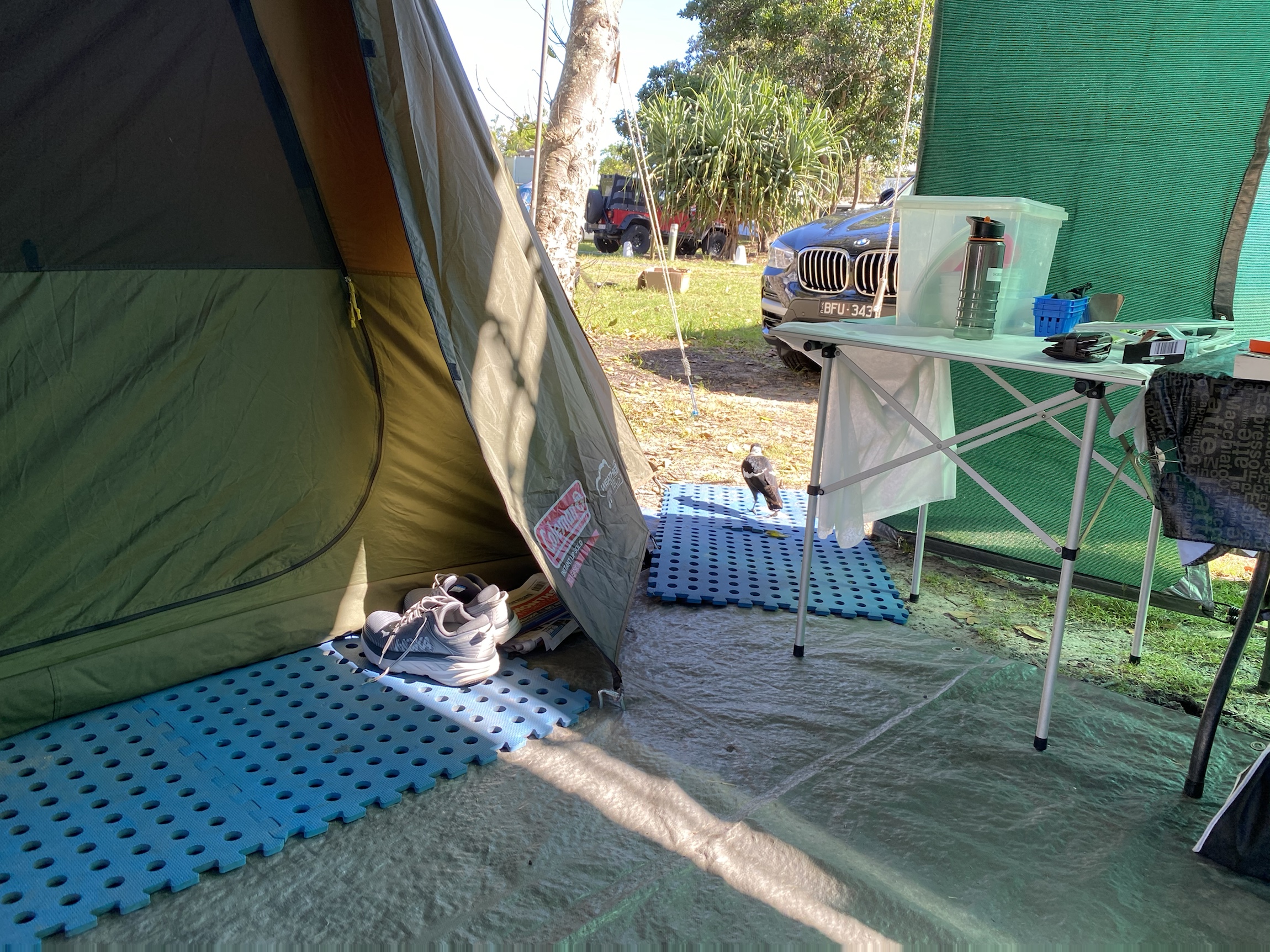 We went off to dinner at the Thai restaurant in Lennox Head with some other friends from camping and had a very quiet New Years Eve Celebration-back at the tent by 10.30pm. The restaurant was buzzing but not a lot of social distancing happening. We were outside and the staff were run off their feet. On returning to the campsite we decided that erecting my tent was pointless because I would only be staying a couple of nights so I slept in the antechamber of Irene and Bill’s Taj Mahal tent. The air mattress fitted perfectly into a corner.