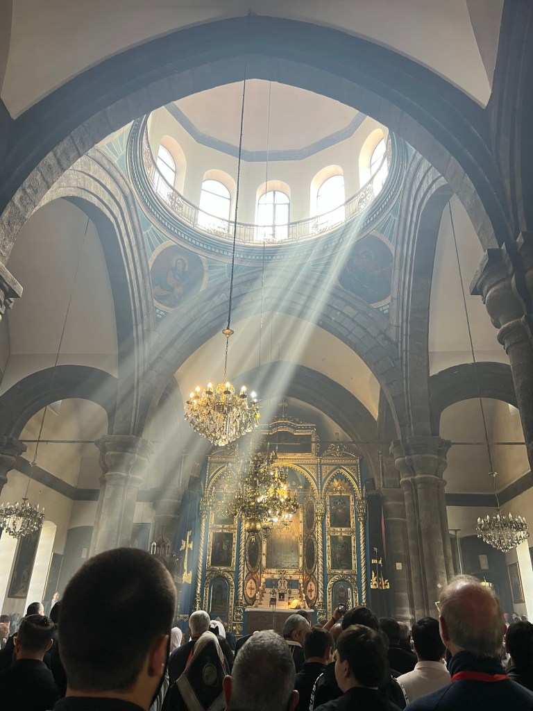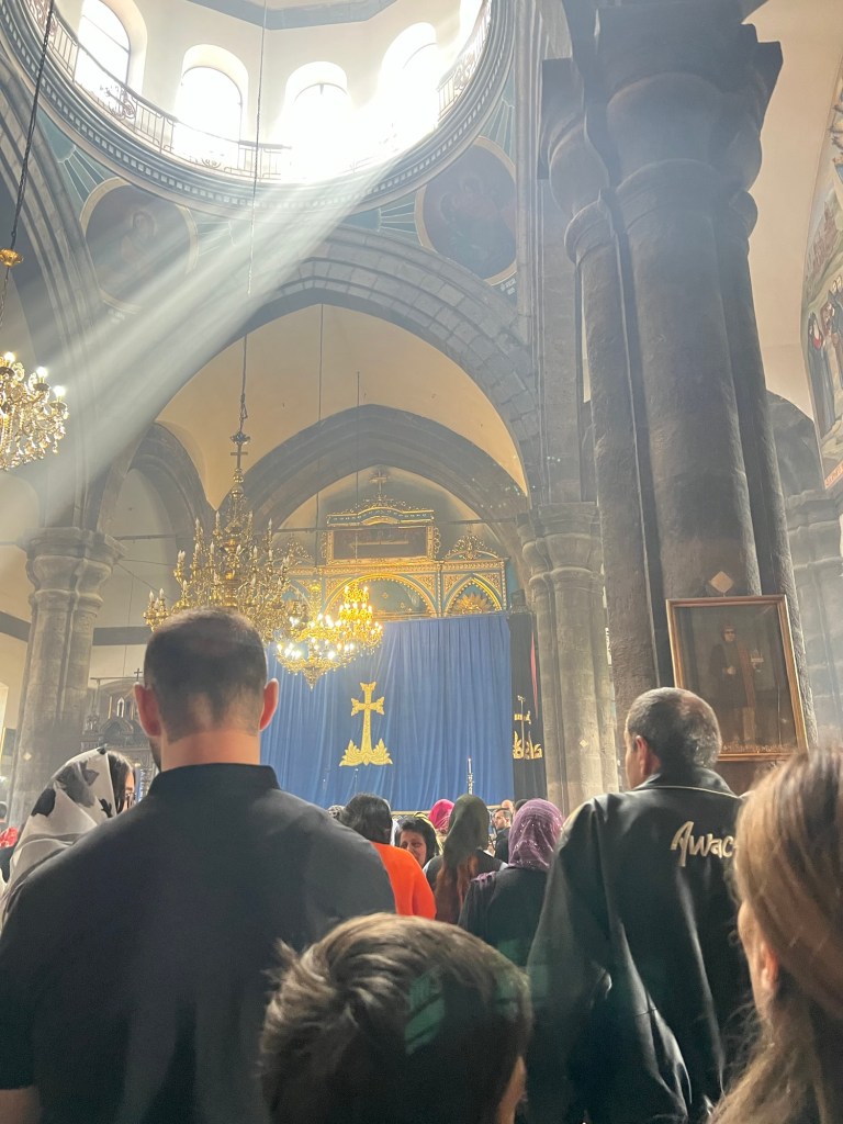 Before we took a stroll we joined Holy Mass at the church of the YotVerk ( seven wounds of Mary) church. Observing a traditional service was confronting in some ways. The priest comes in and then after a few words/ prayers he makes a procession right around the church with incense burner swaying, a banner which was touched like a talisman by many parishioners, a couple of attendants carrying silver plates on poles with engraved angels and bells attached. All these elements were touched prayerfully. Others in the congregation gave the priest incense pieces as he worked his way back to the altar. The church was packed with lots of young people, men and women. At times the congregation touched the floor in responses. There were some men who were kneeling in prayer like Muslims as there are no pews except around the edges for the older congregation. At the back throughout the service ( which goes for two hours) people were coming and going and chatting! What is very different is that the altar is like a stage. It has a curtain that is closed when the priest is preparing the host for communion and then drawn for the other parts of the service.