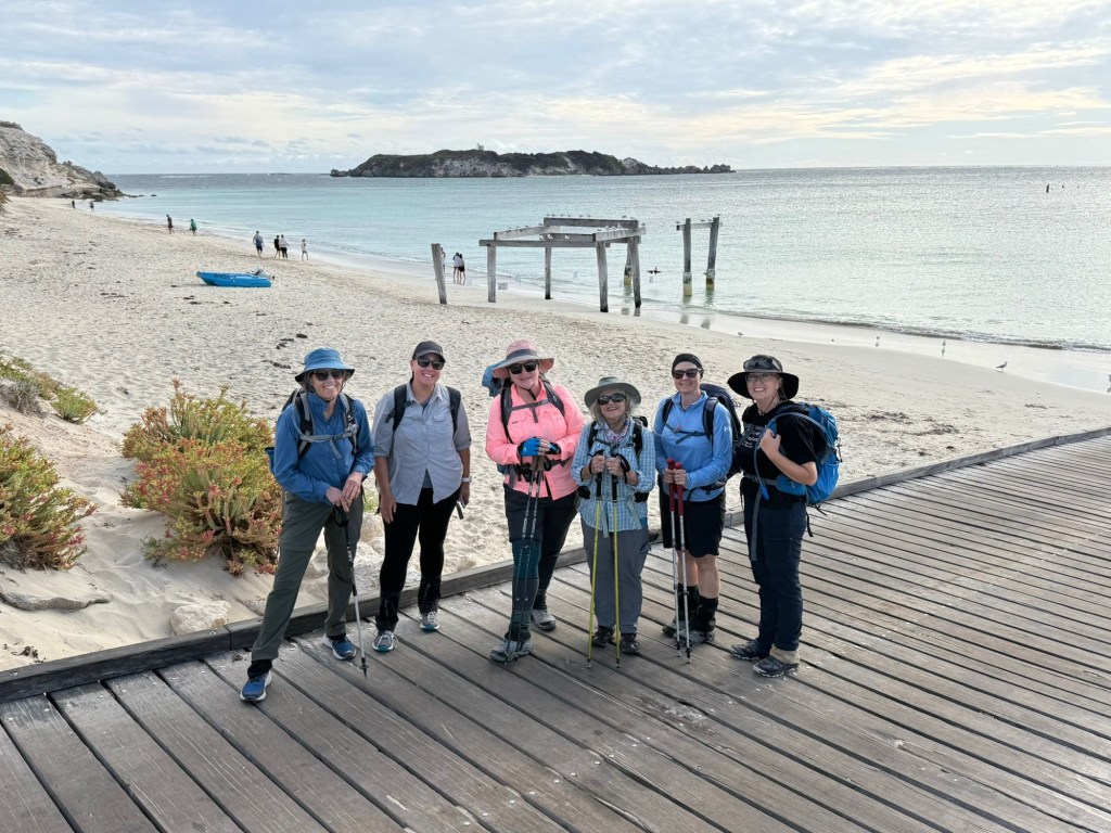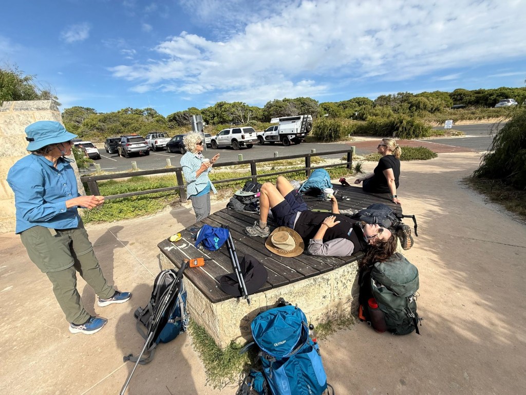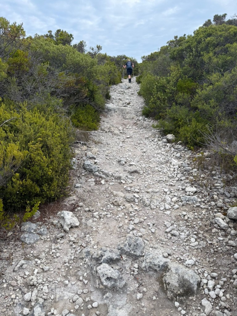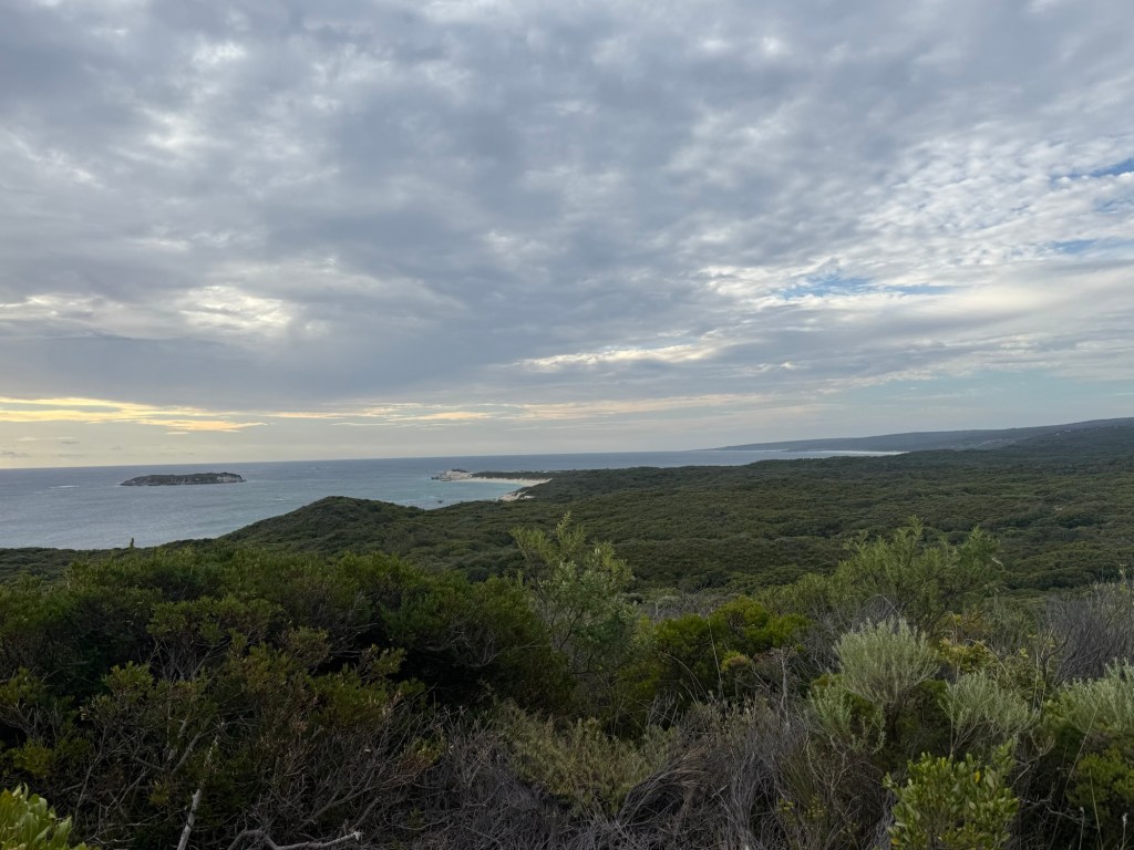We started briefly in the forest then appeared at the cliff and saw our destination spread out before us. A spectacular vista of sand and turquoise sea all the way to Hamelin Bay. That would be halfway more or less.t
