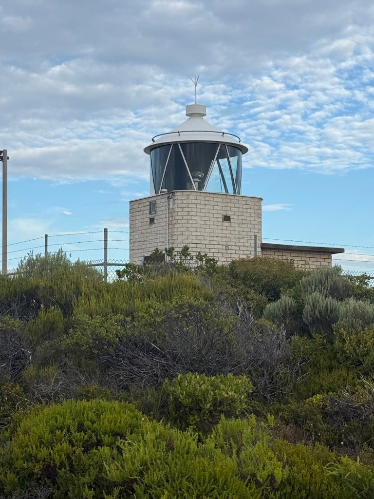 Then we walked back up the headland to climb to the Foul Bay Lighthouse a very 1960’s brutalist building named for the rotting seaweed in the bay below which was caused by flies laying eggs that became maggots that fed fish and birds. Disgusting.
