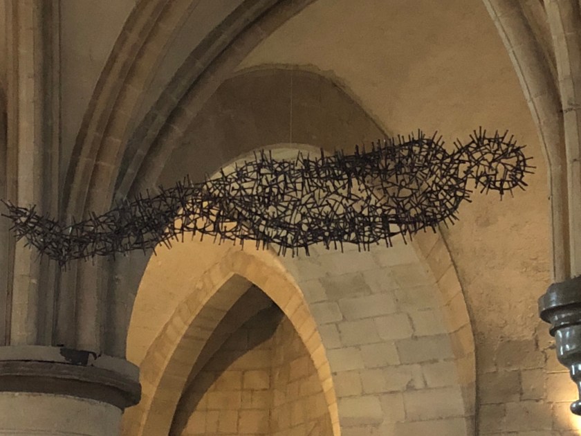 The art installations were all based around a theme of pilgrimage/refugees/unity. When we walked into the nave we saw a magnificent boat shaped ‘chandelier’ . It was awesome in the true sense of the word.