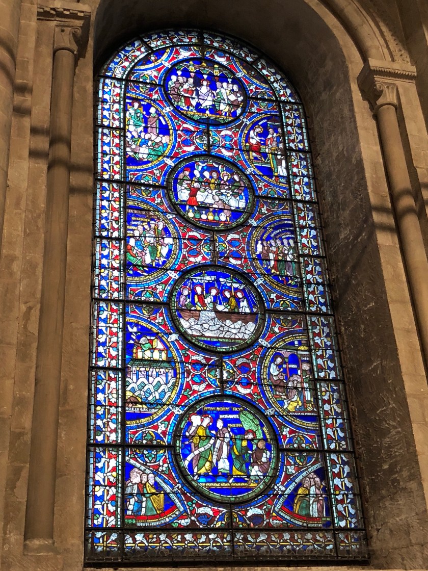 It is of course a medieval church from 597 AD which became a place of pilgrimage after Thomas Becket was murdered in the Cathedral in 1170 and soon after miracles were said to have occurred. At one stage 100,000 pilgrims came to visit in 1177. These pilgrims made the church wealthy and paid for the magnificent stained glass windows that tell the story of the miracles.
