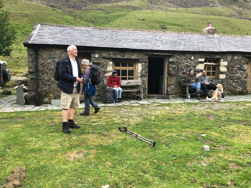 Today’s walk was fantastic. An easy walk around the lake then a steady climb initially and very fast walking until we arrived at Black Sail Youth hostel where we were able to make hot drinks to accompany our lunch! What a treat. This is a busy place because it is at the foot of Loft Beck which is a mountain about 680 metres high and an important staging point for the walks in the area. There are all these wooly sheep, Herdwick breed that apparently have been here for at least. 1000 years. The name comes from old Norse. They are very untidy and straggly looking, starting out black as lambs and getting greyer and light as they age.