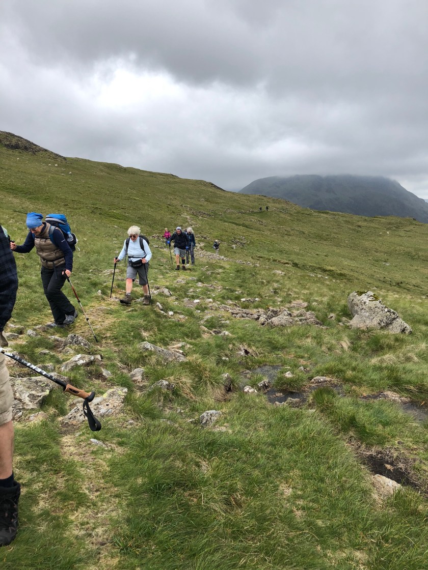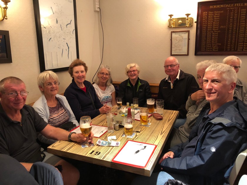 Maura had come down with a cold and had not felt up to the days walk after struggling yesterday. She was taken to the local medical facility for a check up by the saintly Rachel and opted to take the luggage transfer to Grasmere. We all felt it had been a good decision because Paul had opted for the three summits/passes because the weather was fine. A few people took tumbles, Colin broke his walking stick and Kingsley had a blood nose. An eventful day.