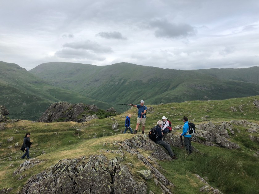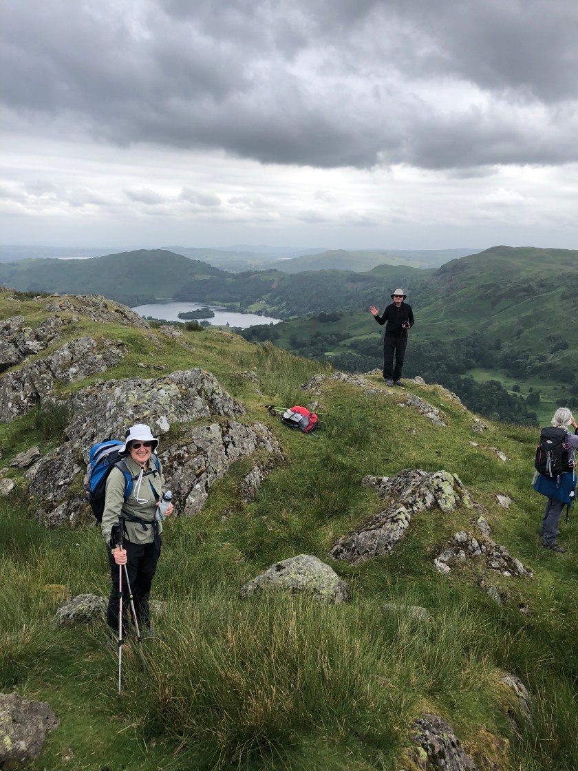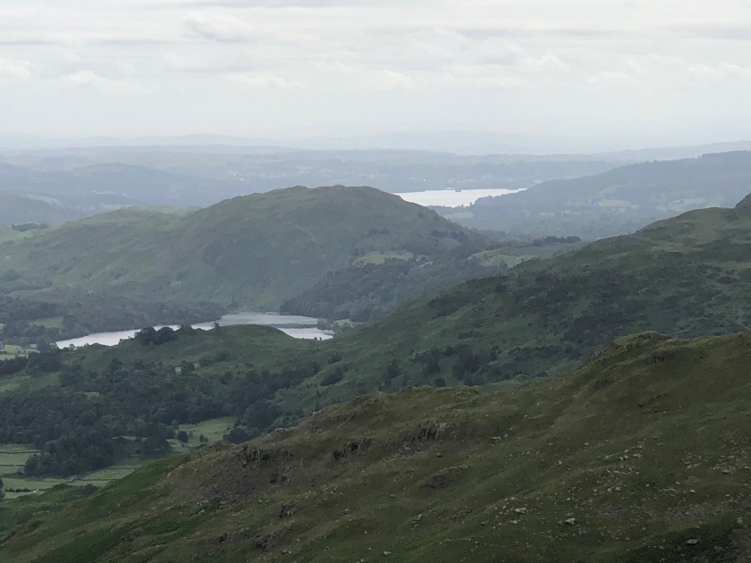 Our path was very steep and involved quite a bit of clambering up rocks. As we climbed higher the views were wonderful and you could see lakes in different valleys. I had never realised there were so many mountains in the Lakes District.