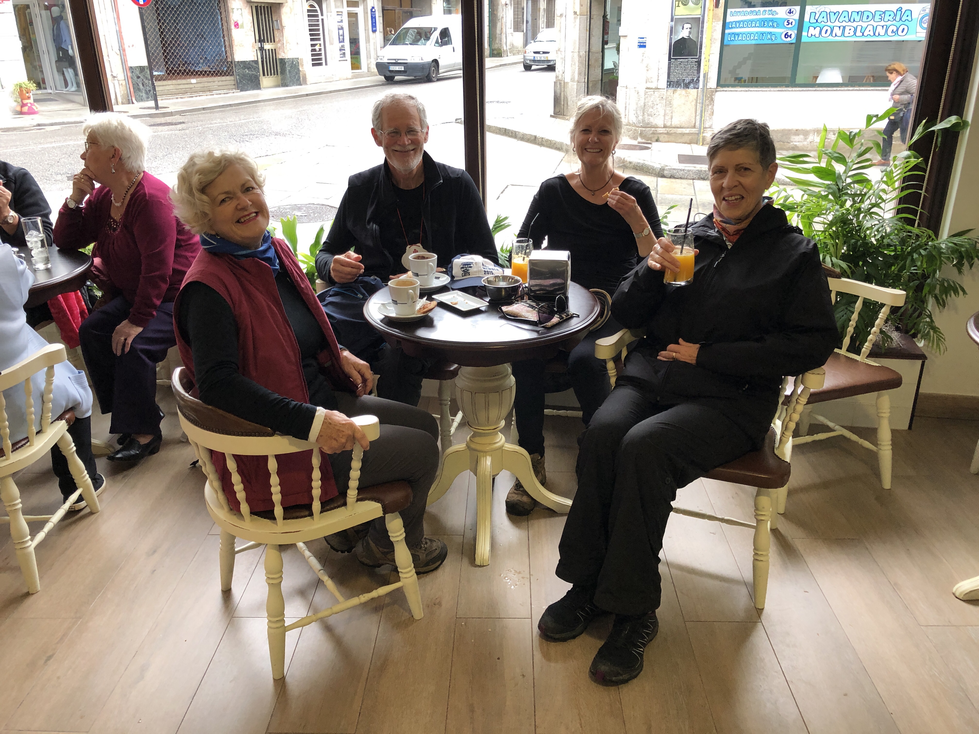 Before we set off Bill and Irene went to charge their phones while Anne and I visited the church. The ladies cleaning the church drew our attention to the glass cupboard with a statue of St James and so we were able to get a stamp for our Pilgrim Passport. We lit candles for Sophie, Anne’s daughter and our families. They wished us well and bade us Buen voyage with such warmth.
