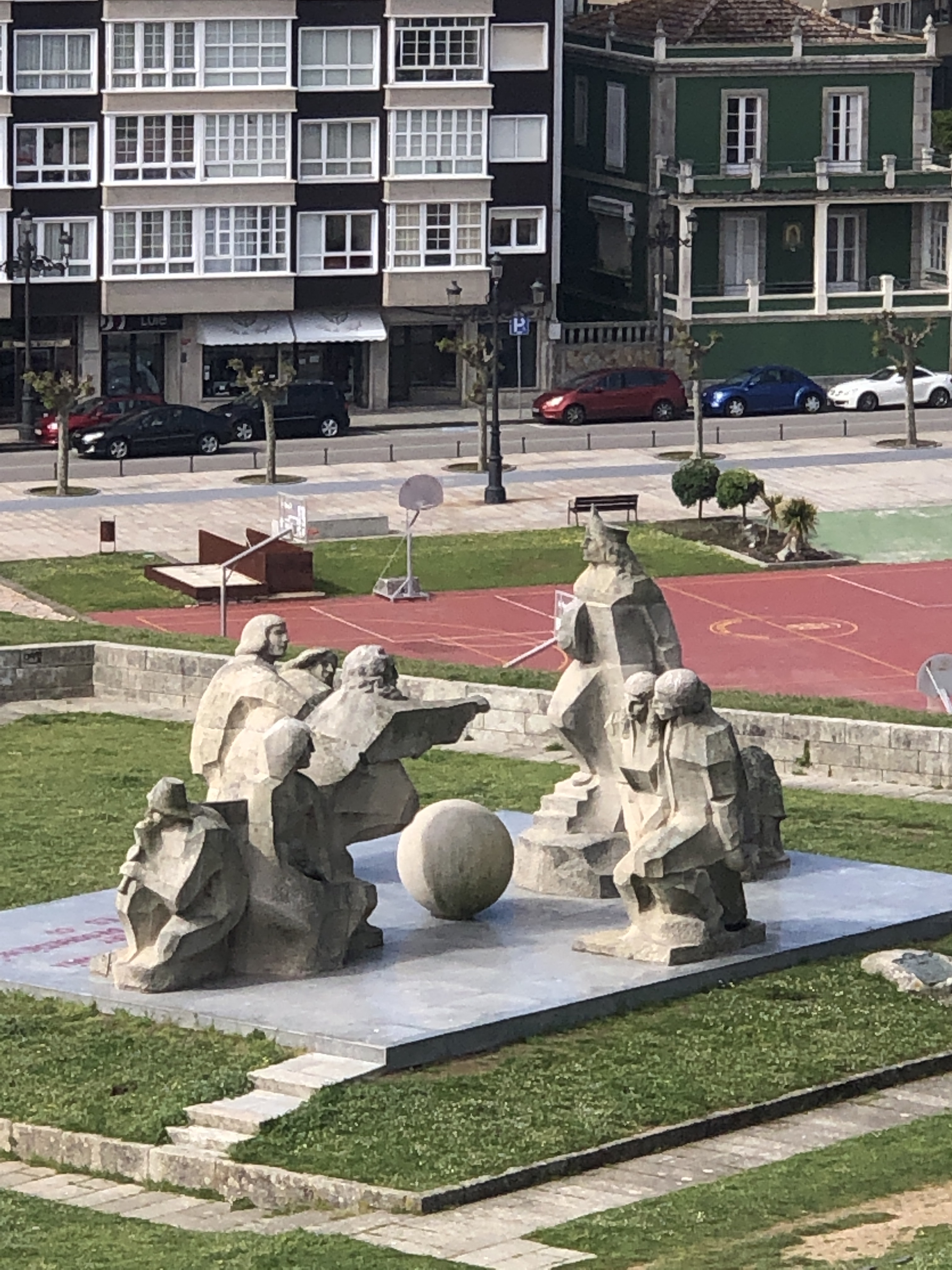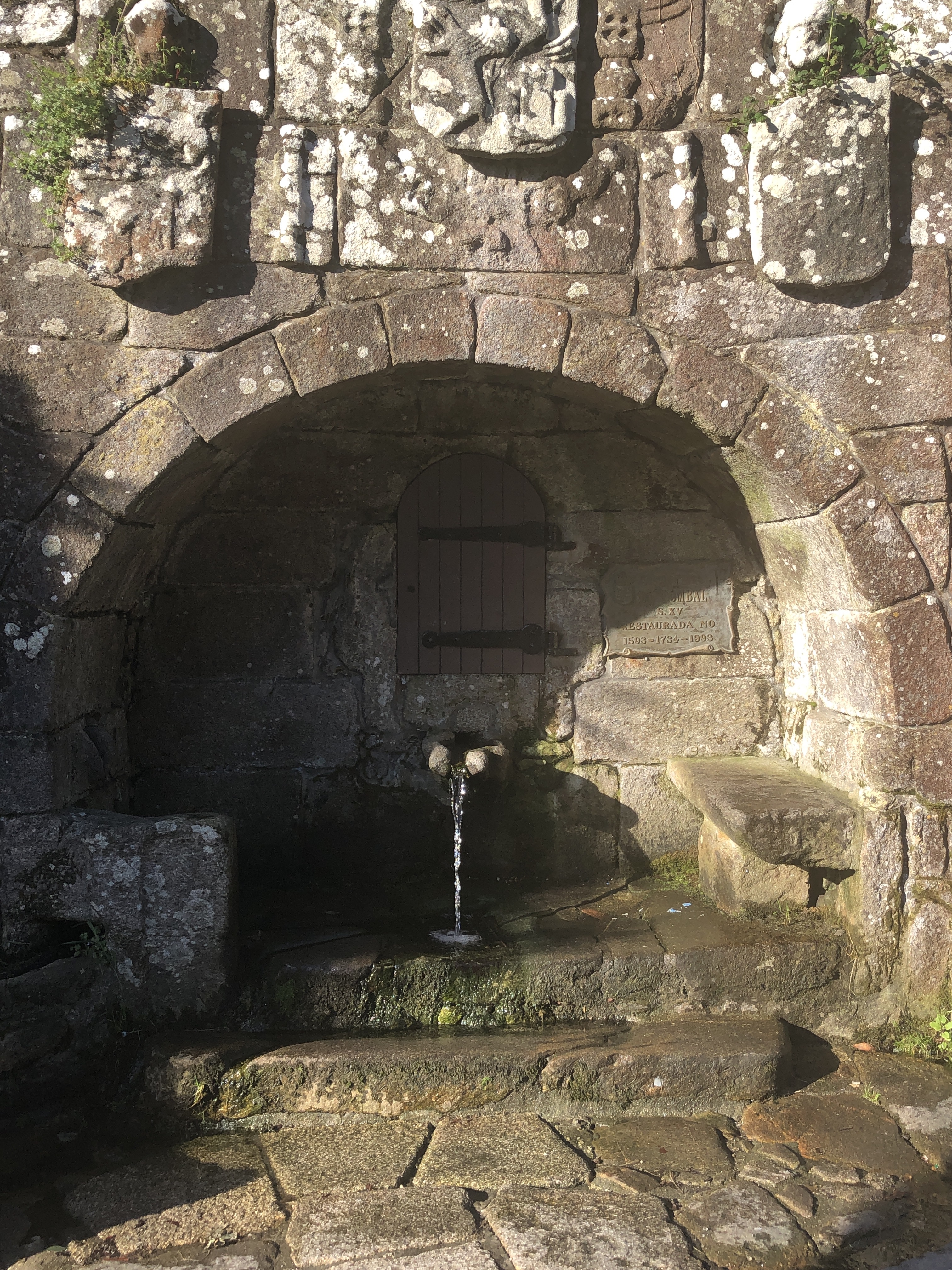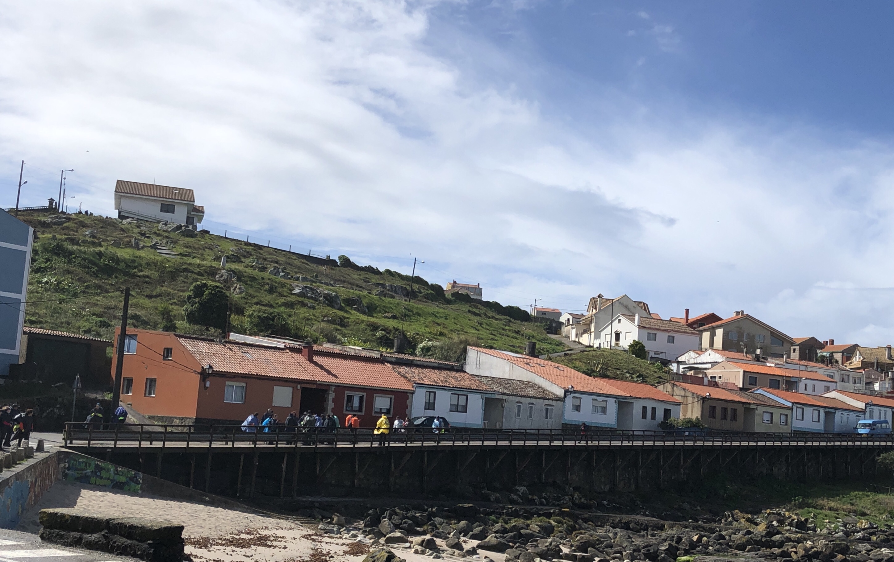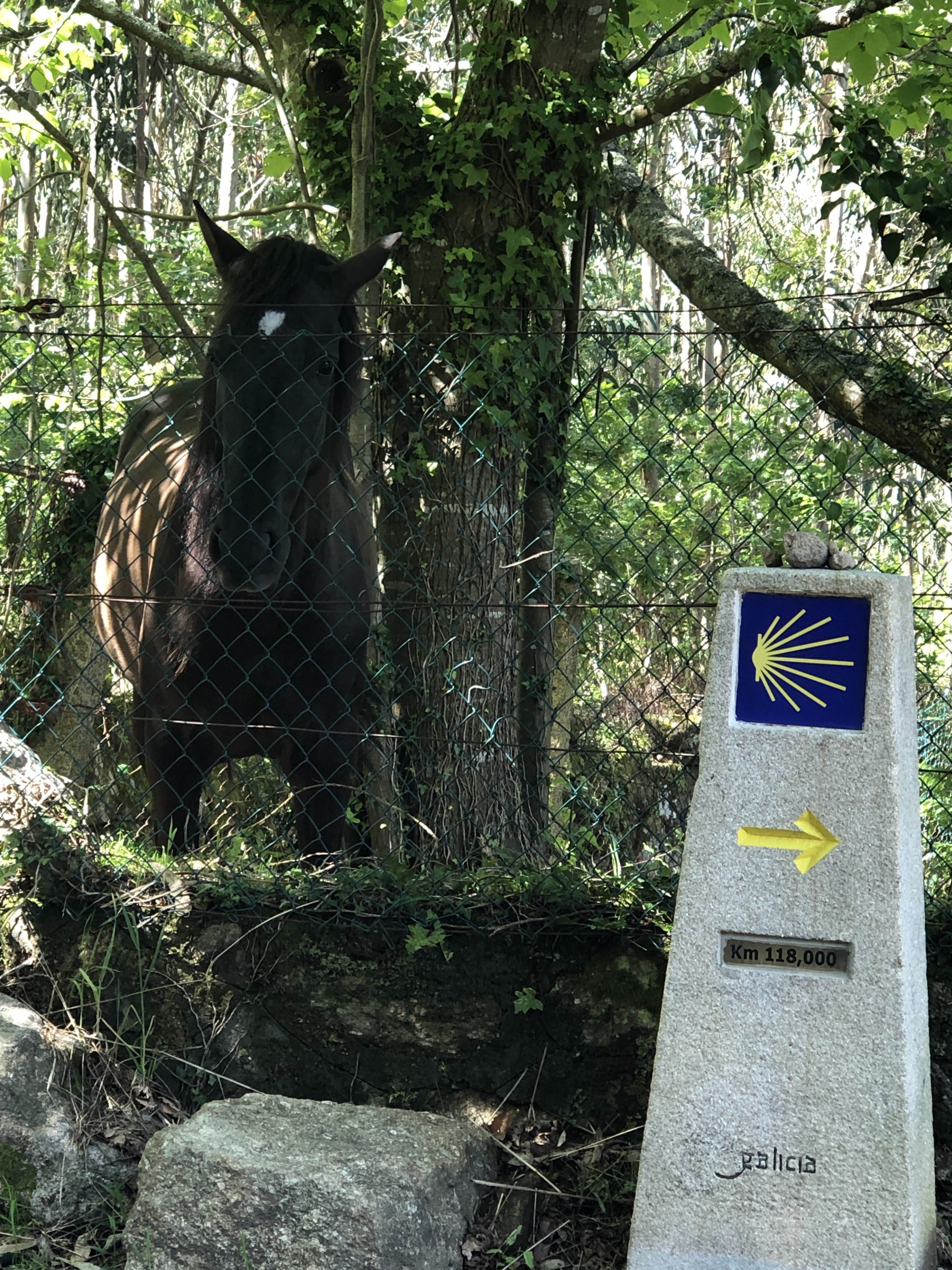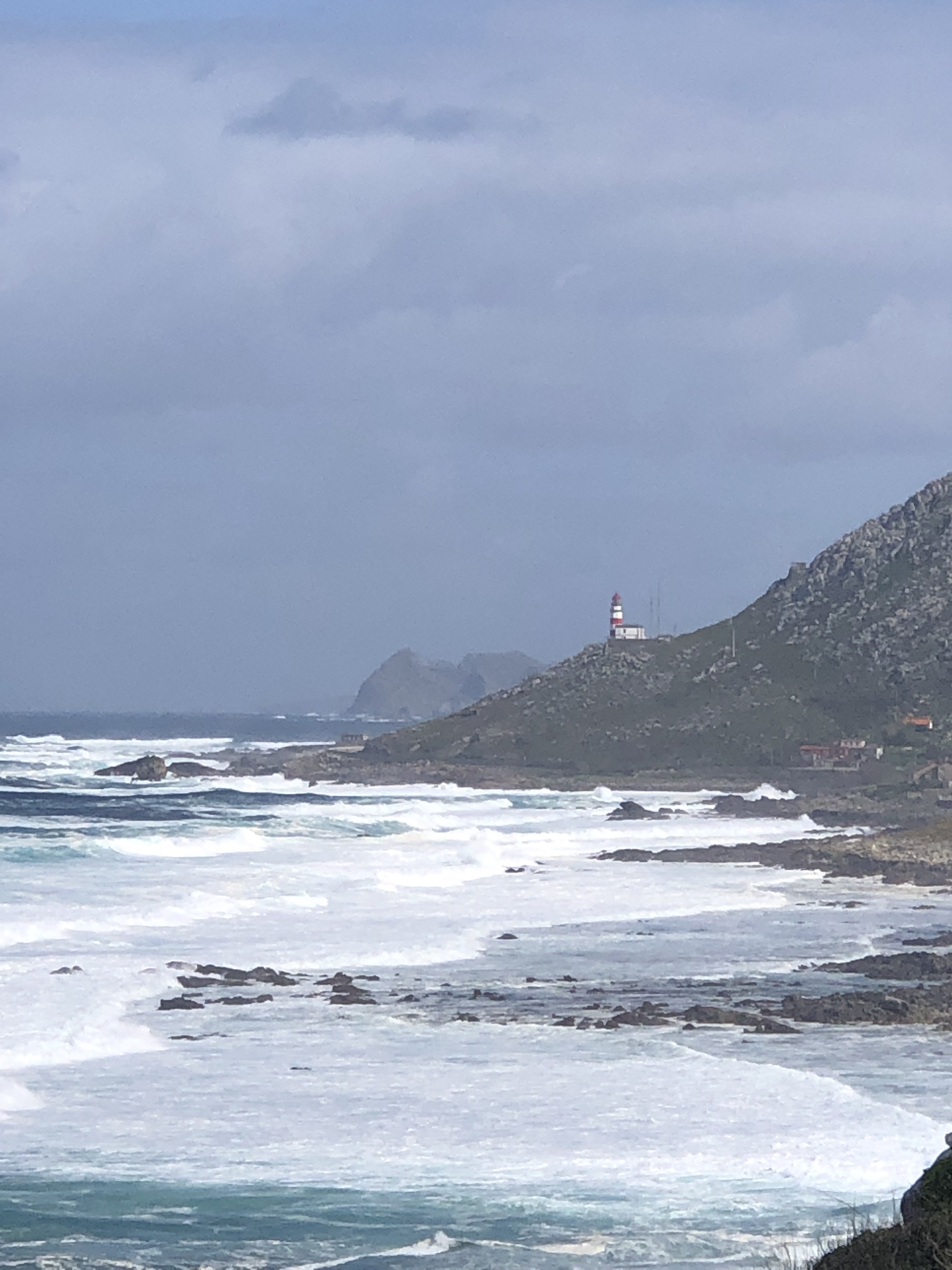 More rain then blazing sunshine. After very clear markings we lost the arrows but continued towards the beach. As we emerged from our street we saw a whole posse of pilgrims stream past. We wondered what route they had taken because we haven’t seen any for at least 15 minutes. These were in fact a new group we think started in A Guarda, perhaps a parish pilgrimage. They were of all ages and in high spirits and crowded the path. Anne and I took to the road to pass them but the group engulfed Irene and in her attempt to get out of the group she slipped on wet boardwalk and tumbled down, grazing her arm. We all eventually overtook them and looking back they seemed like a group of zombies after us!