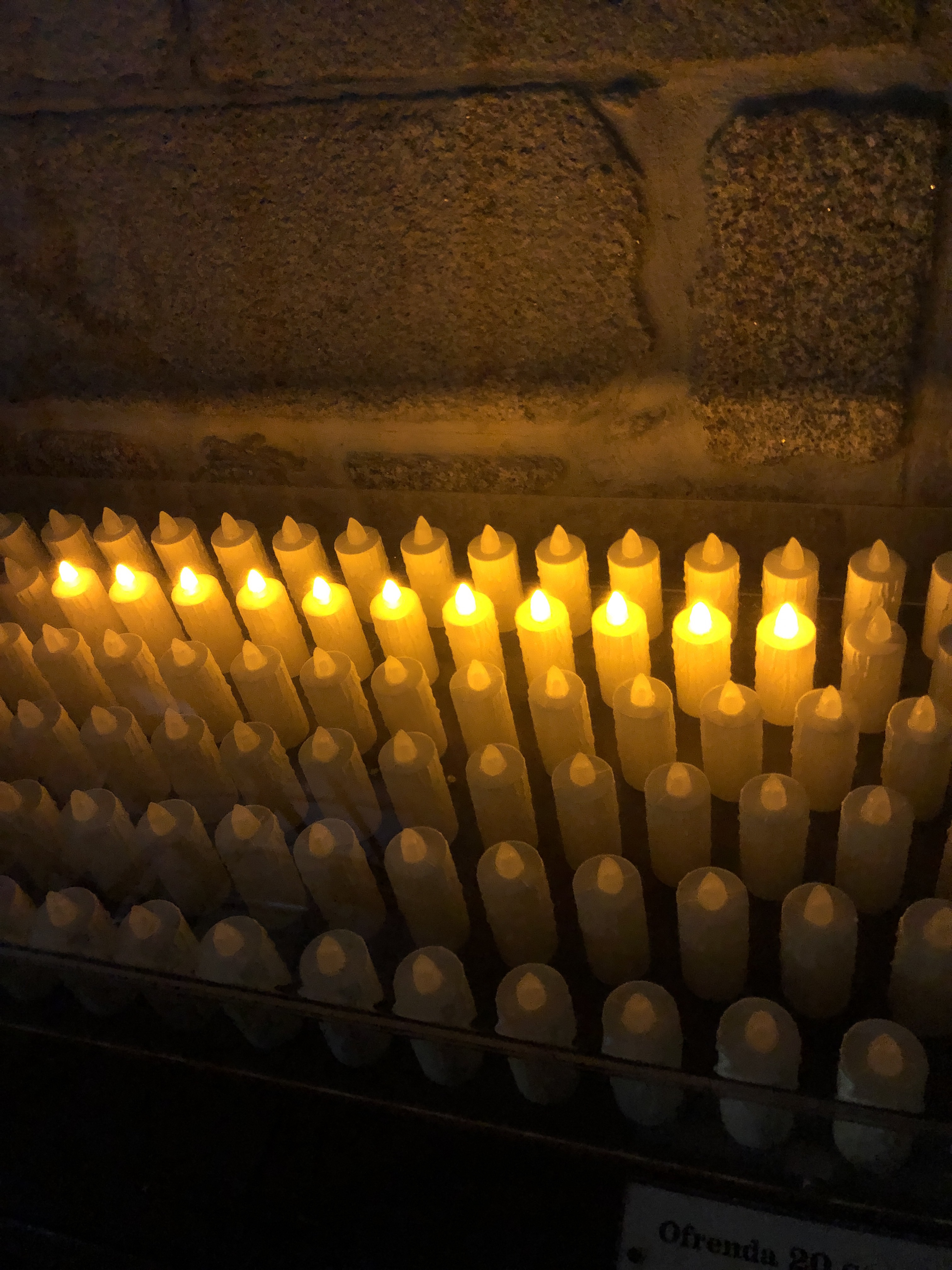 Before we set off Bill and Irene went to charge their phones while Anne and I visited the church. The ladies cleaning the church drew our attention to the glass cupboard with a statue of St James and so we were able to get a stamp for our Pilgrim Passport. We lit candles for Sophie, Anne’s daughter and our families. They wished us well and bade us Buen voyage with such warmth.