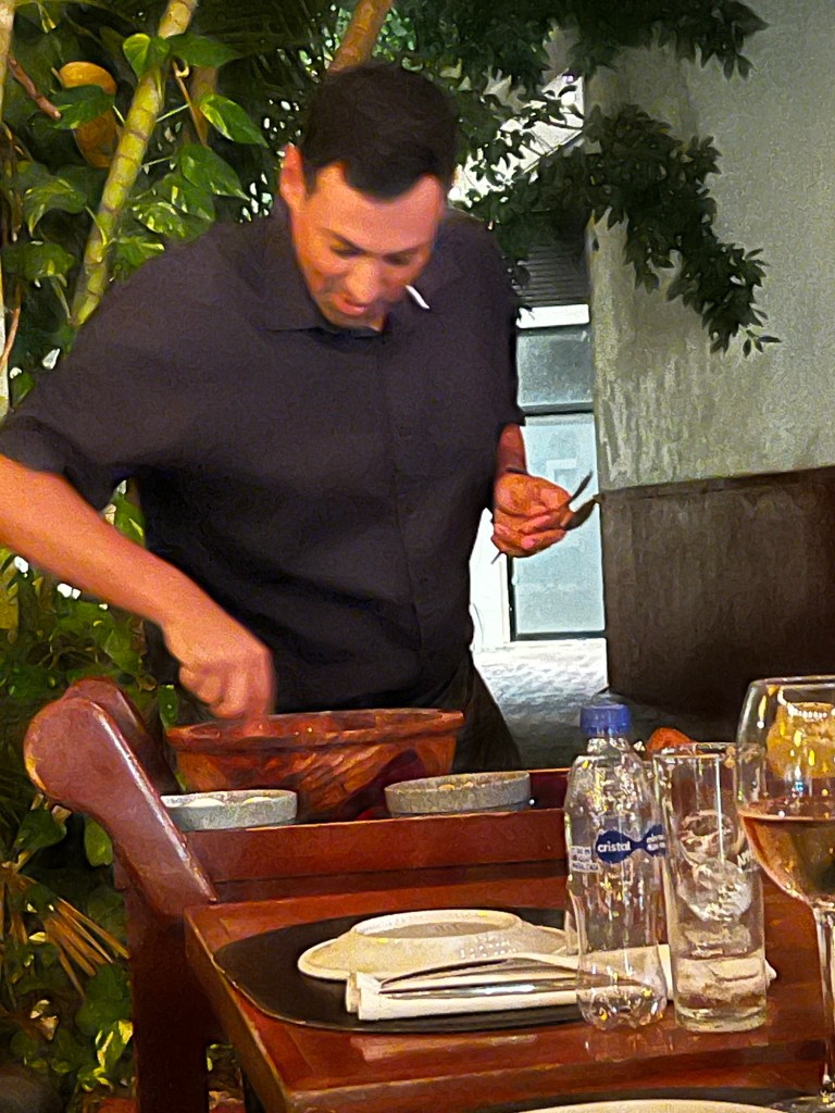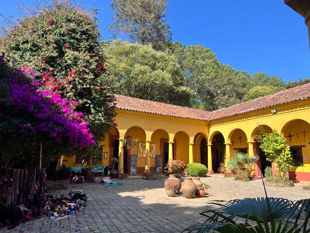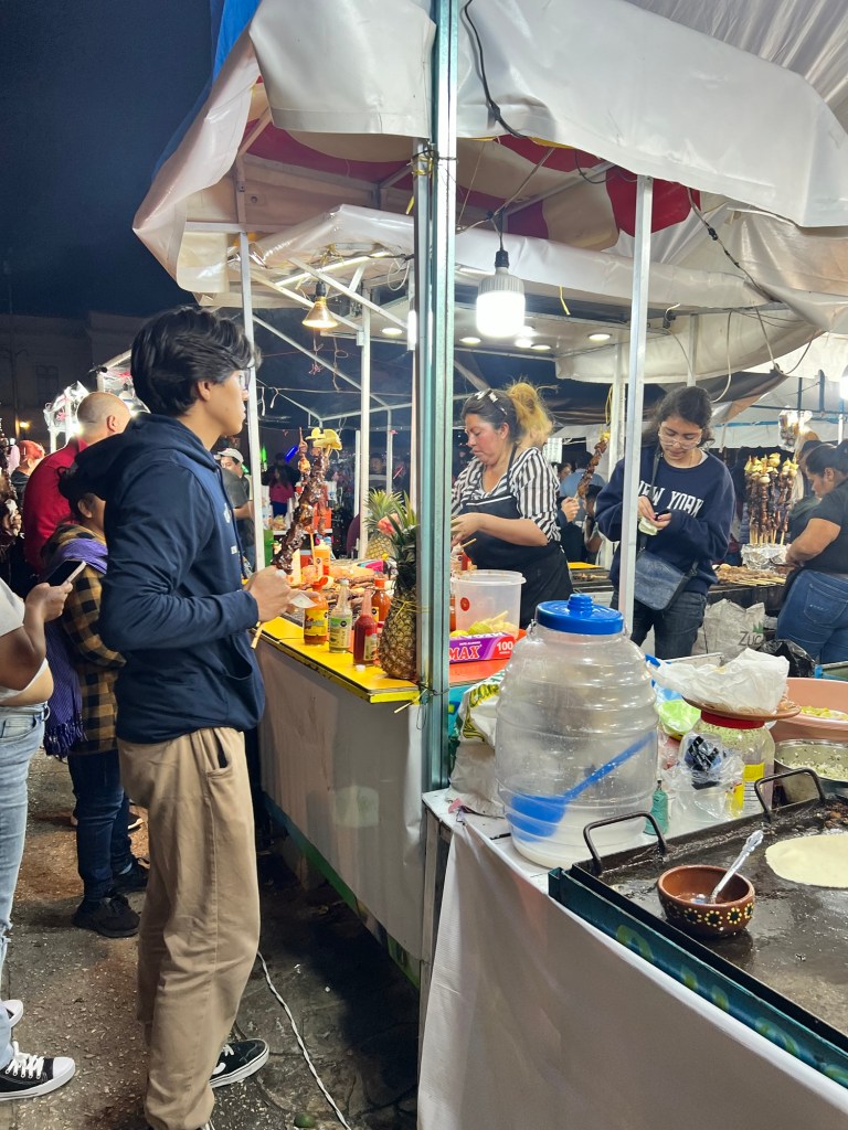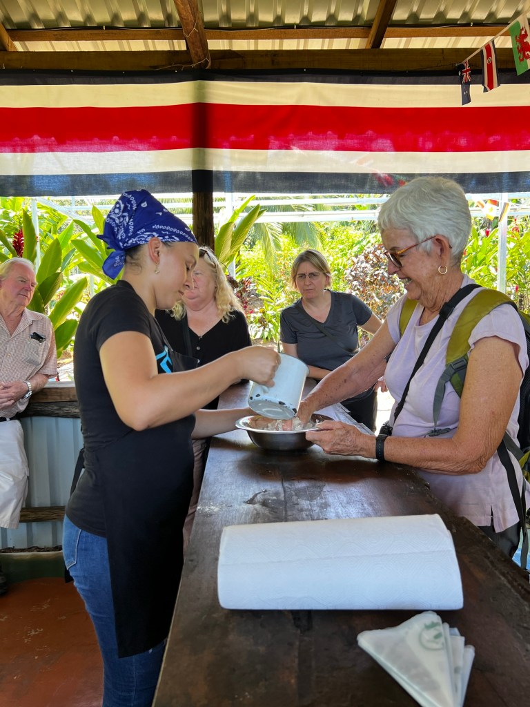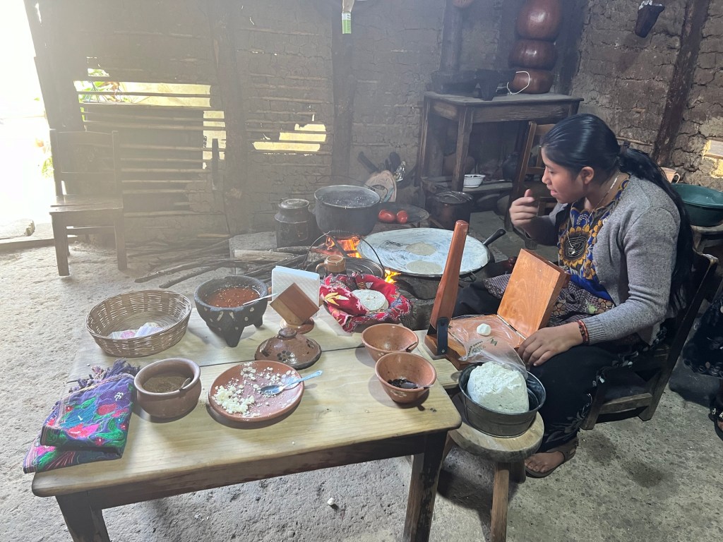 Next was a tortilla making experience. Amy got to make the dough (corn flour and water) and roll it into balls then we had to flatten them out- no presses here!