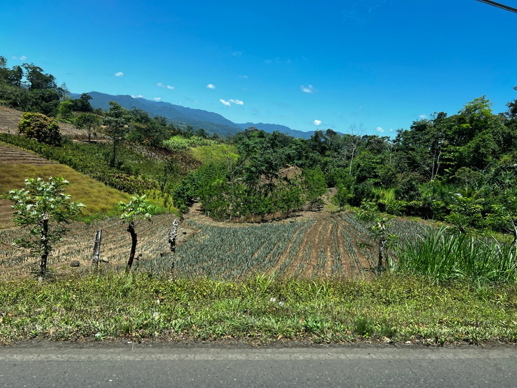 Along the very winding road we passed many crops of pineapples and Dracena plant farms. They export both products.
