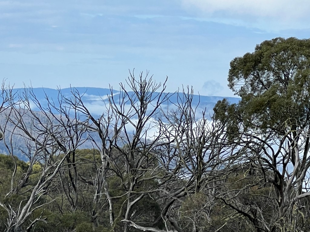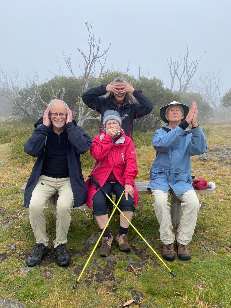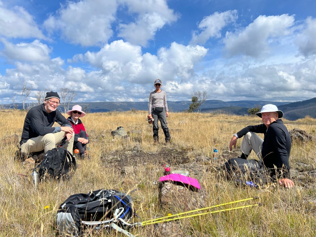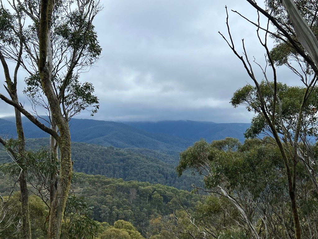 Another slow start- so relaxing. Weather wet and cloudy but after lunch we walked to Room with a view and the Montaigne Loop. Room with a view is a gentle decline to the edge of the mountain looking back towards Hotham and the Cobungra Valley.