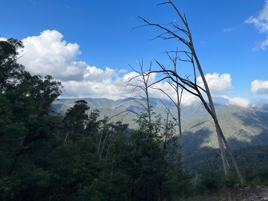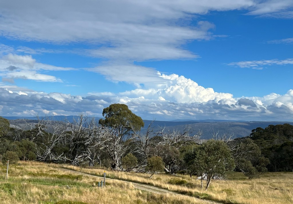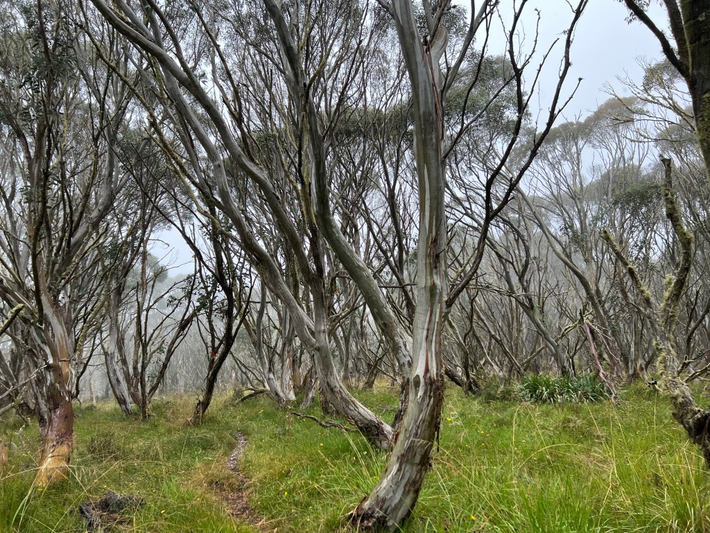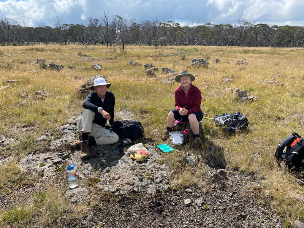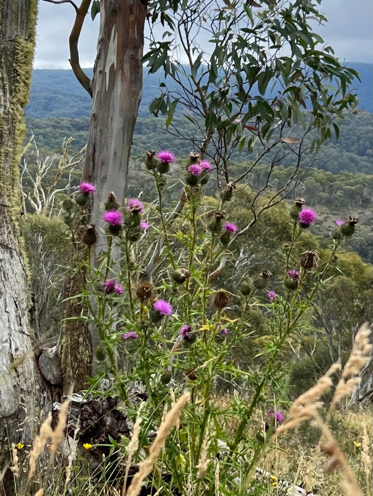 Another slow start- so relaxing. Weather wet and cloudy but after lunch we walked to Room with a view and the Montaigne Loop. Room with a view is a gentle decline to the edge of the mountain looking back towards Hotham and the Cobungra Valley.