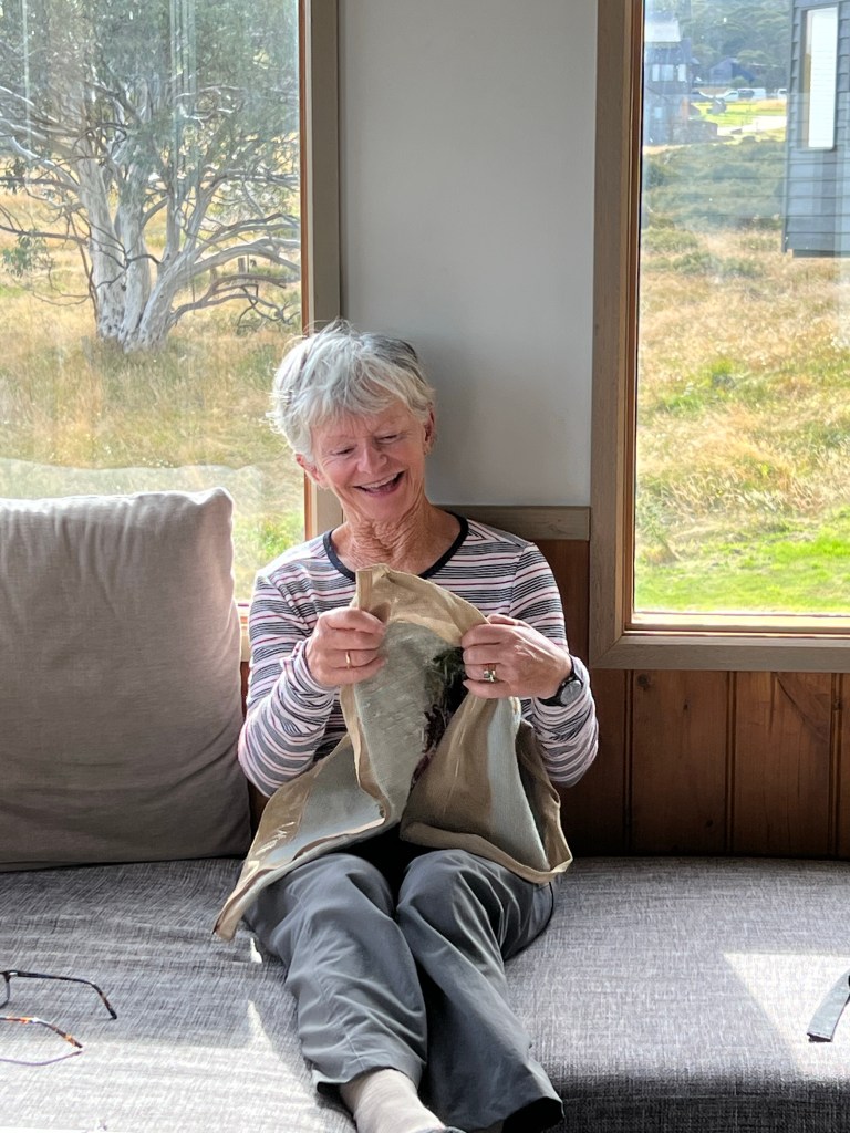We eat like kings and queens because we all like cooking and usually bring interesting meals. I was doing a new recipe of curried eggplant and green beans over rice, served with stir fried broccolini and snow peas in lemon and garlic, sprinkled with pepitas and sunflower seeds. This was followed with Coconut yoghurt and baked strawberries in sumac. I was so pleased because it was light and delicious but satisfying. That is a recipe I will repeat.
