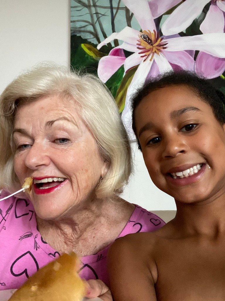 He was a delight to have and is back to sleeping in the spare room again. When he told me he wanted to make pancakes for breakfast for my birthday present I expected to be asked where all the ingredients would be found. But no; he knew where everything was in my kitchen, even the flour and the measuring cups. He only asked me how to turn on the gas stove. I was very impressed with the results and we ate them all! He is a very competent chef in the kitchen at 8 years old and I was so proud. He is very observant- like most kids he is a sponge! A great credit to his parents and their enthusiasm for cooking, and patience in the kitchen!