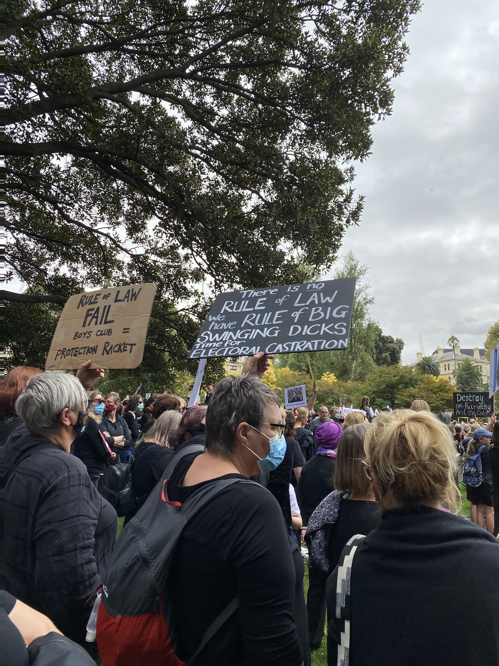 Yesterday’s was the Women’s March4Justice held in every capital city and many provincial cities and towns around Australia. Here in Melbourne it was held in the Treasury Gardens and was attended by about 10,000 people, predominantly women, but also men. They came in black with face masks and represented all ages from young to old. It was inspiring to see the number but also damning that we are still fighting for equality and respect. The Prime minister Scott Morrison declined to address the Canberra crowd but stated in parliament, “ this is a triumph of democracy when we see these things take place. Not far from here, such marches, even now are being met with bullets, but not here in this country.” (The Age, ‘Morrison pushed to act as ‘winds of change howl’,’15th March, p4.)