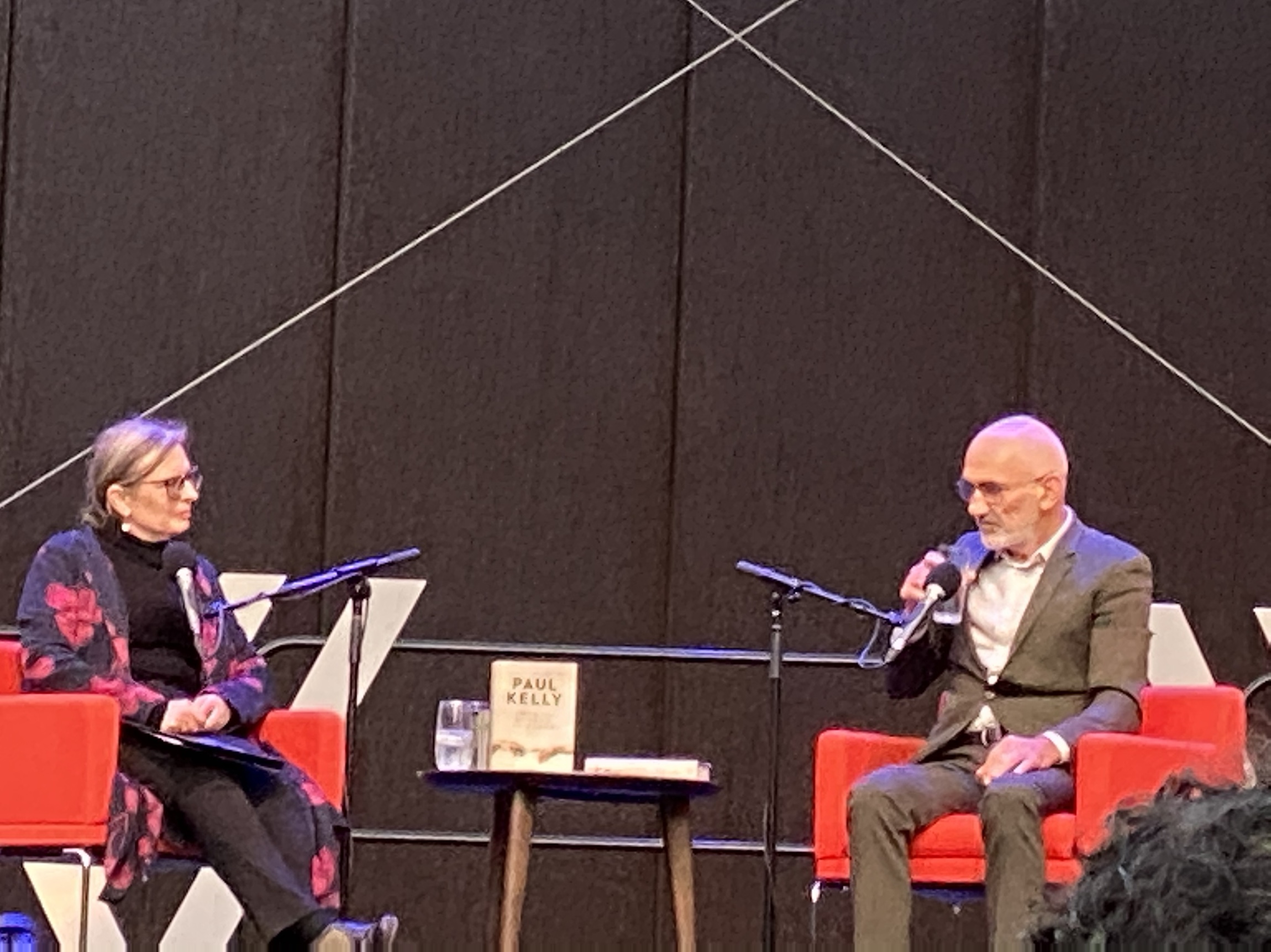 Jane and I , Paul Kelly and Alison Croggon in the forecourt of the Malthouse Theatre 29 th March.