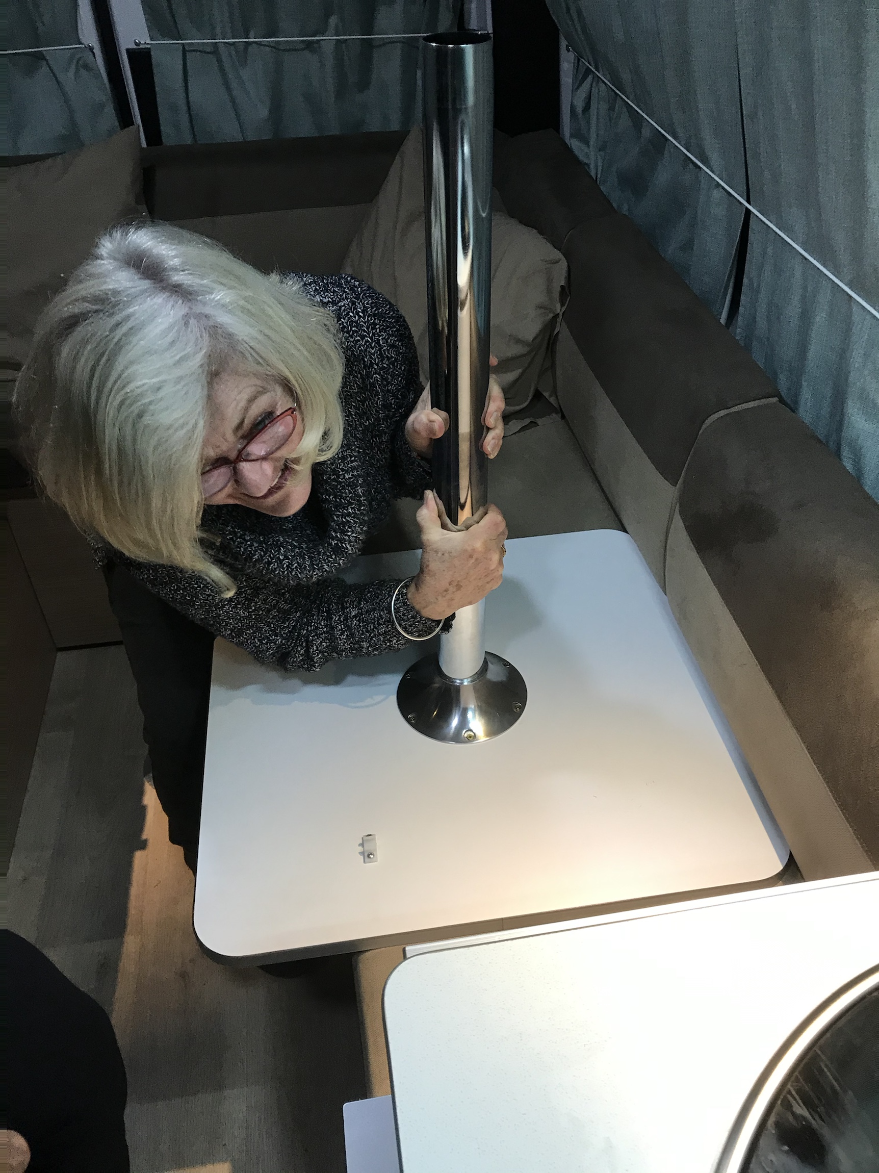 That evening there was a lot of laughter as I tried to dismantle the table for Bill and Irene’s bed. I just couldn’t dislodge the pole and then I was laughing so much I was completely useless. Bill came to the rescue and showed me how.