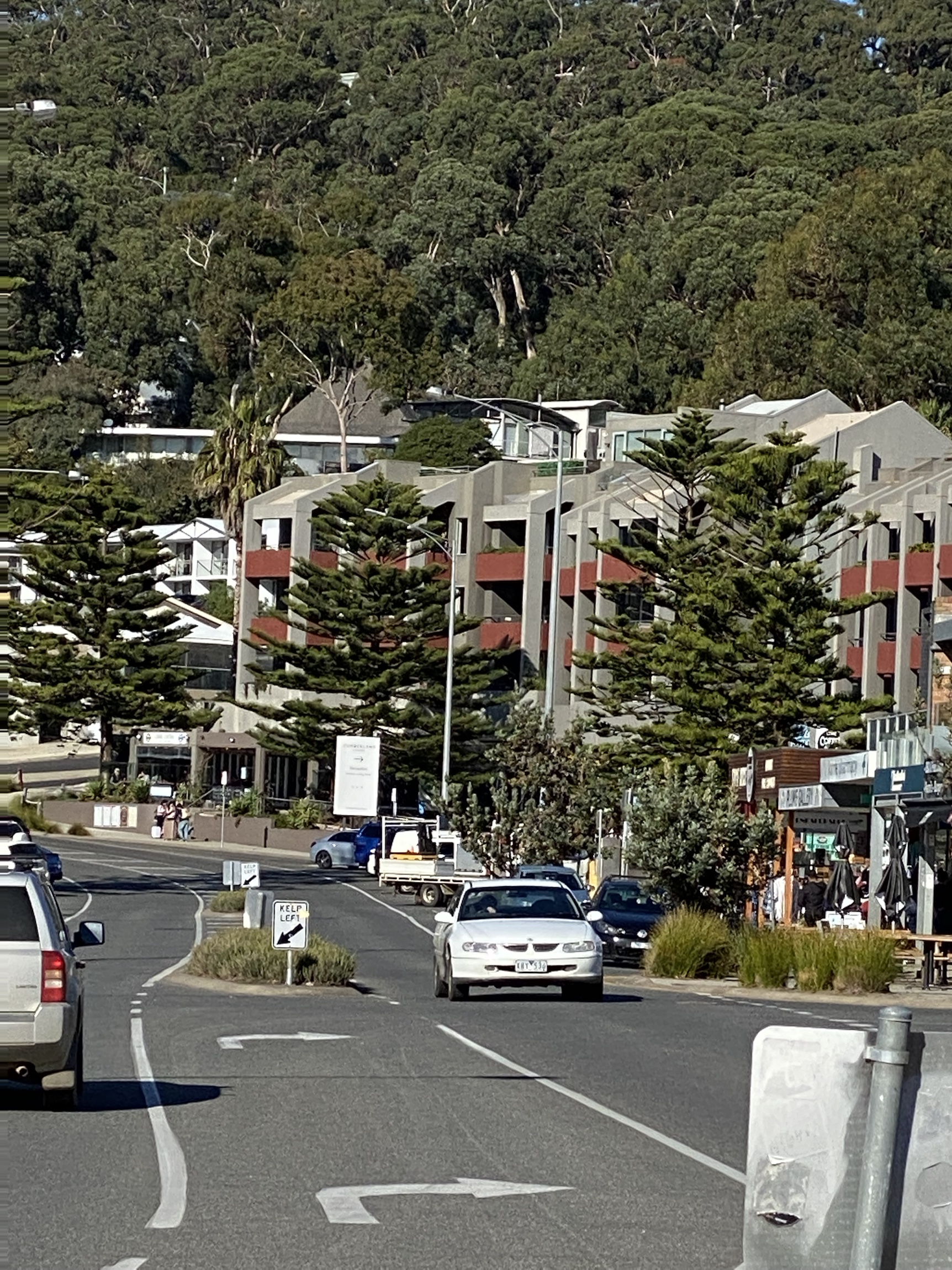 The next morning we collected the van and drove tentatively home to Kew to pack. Getting the hang of the longer wheel base was the first lesson, parking was the second. We had a daunting amount of stuff but it all fitted and we were on our way soon after. Our first destination was Lorne. We stopped at Torquay for lunch and managed to turn the front chairs around and set up the little table. It was tricky and the last time we ever bothered!