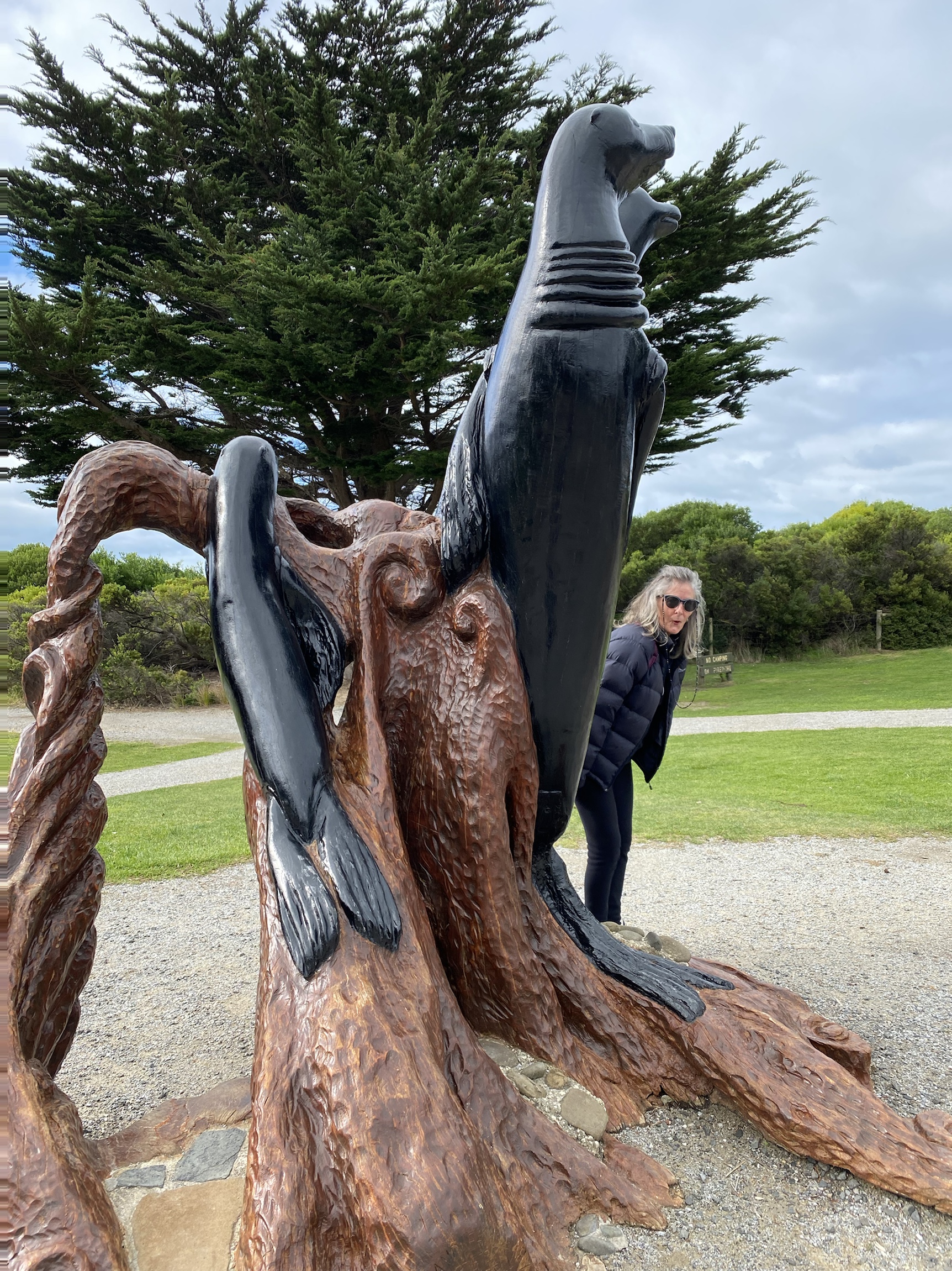 Next stop Apollo Bay and lunch of Scallop Pie and Chai Latte, not in the van. Now it was my turn to drive. With trepidation I took the wheel but soon felt comfortable. It was easy to drive, just needed to remember the long wheel base when going round corners. I got a lot of practice as I drove through the Otways winding roads! Our destination was Port Fairy. I missed the turn-off to our selected Caravan Park and then found the only other access was a road under repair which was closed! We set off for another campsite but it was closed too. We were getting a bit desperate but I had seen a Big 4 as we came into town and though rather characterless, we were glad to stop there. I backed the van successfully into place. When we left this Caravan Park the manager gave us a bottle of wine! Friendly anyway.