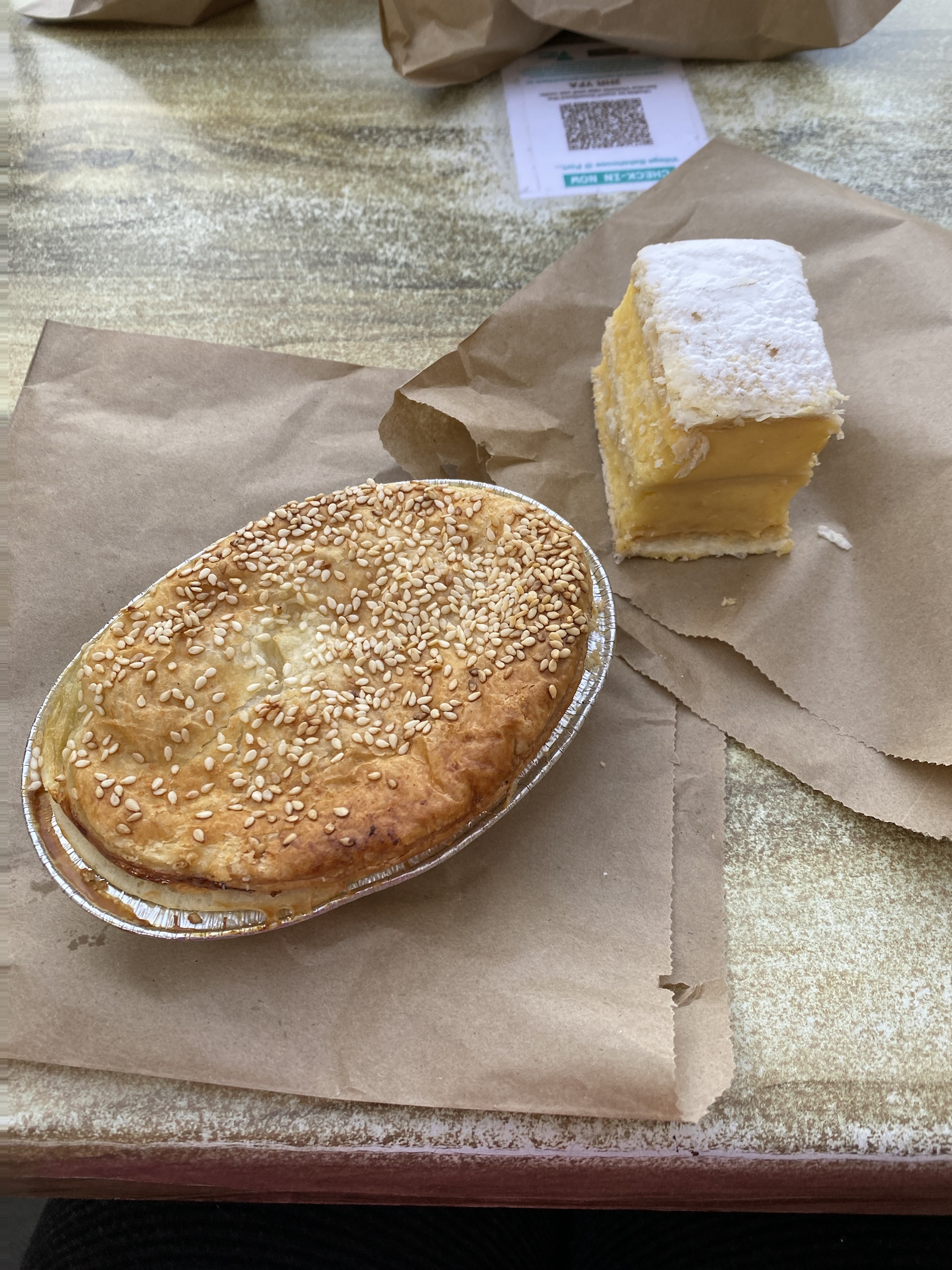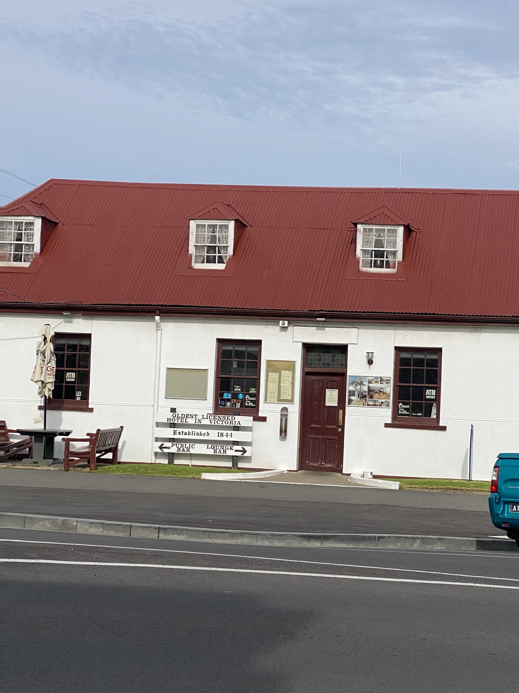 Delicious scallop pie, the oldest licensed hotel in Vic., the Van, me and the table.