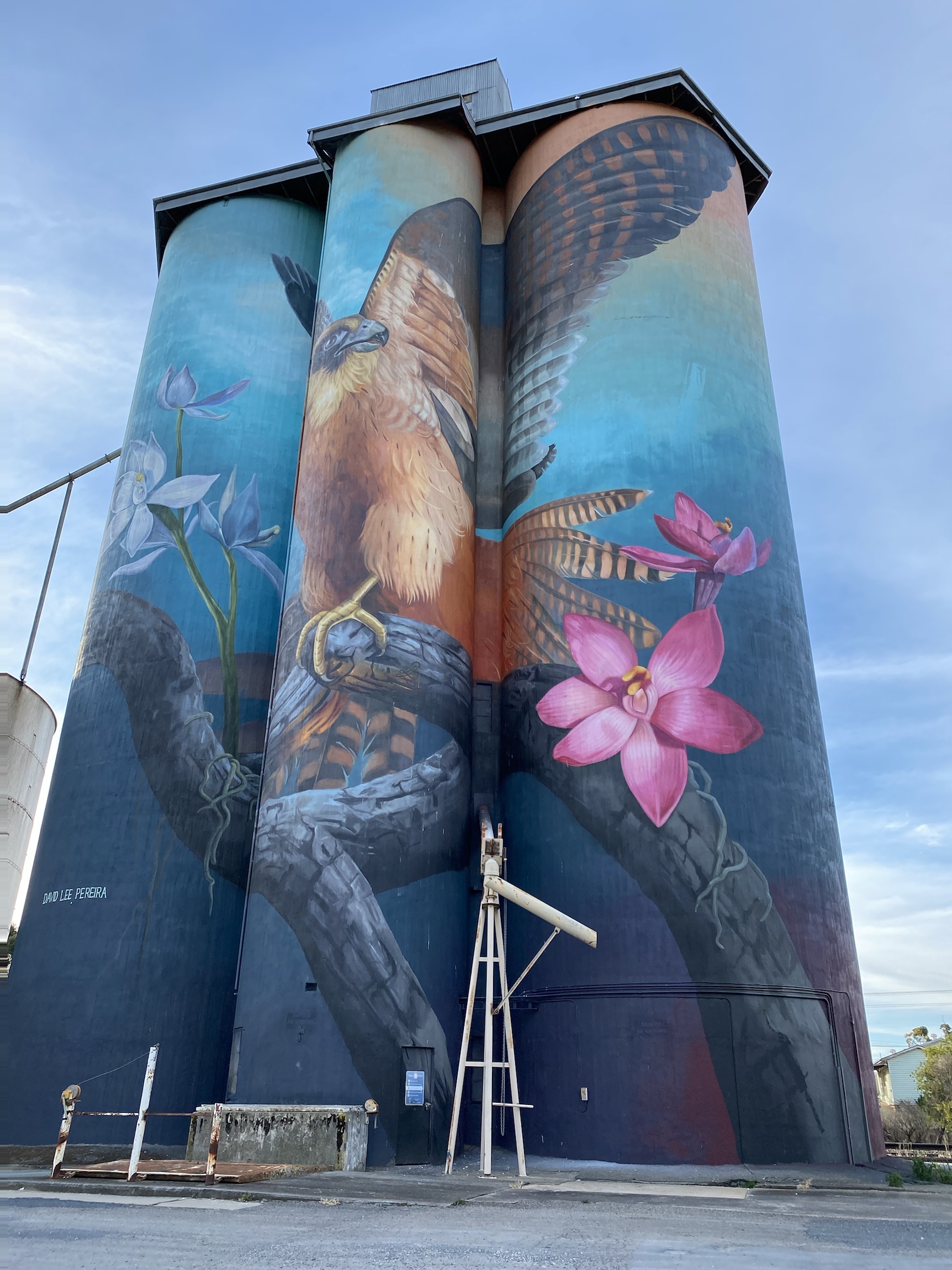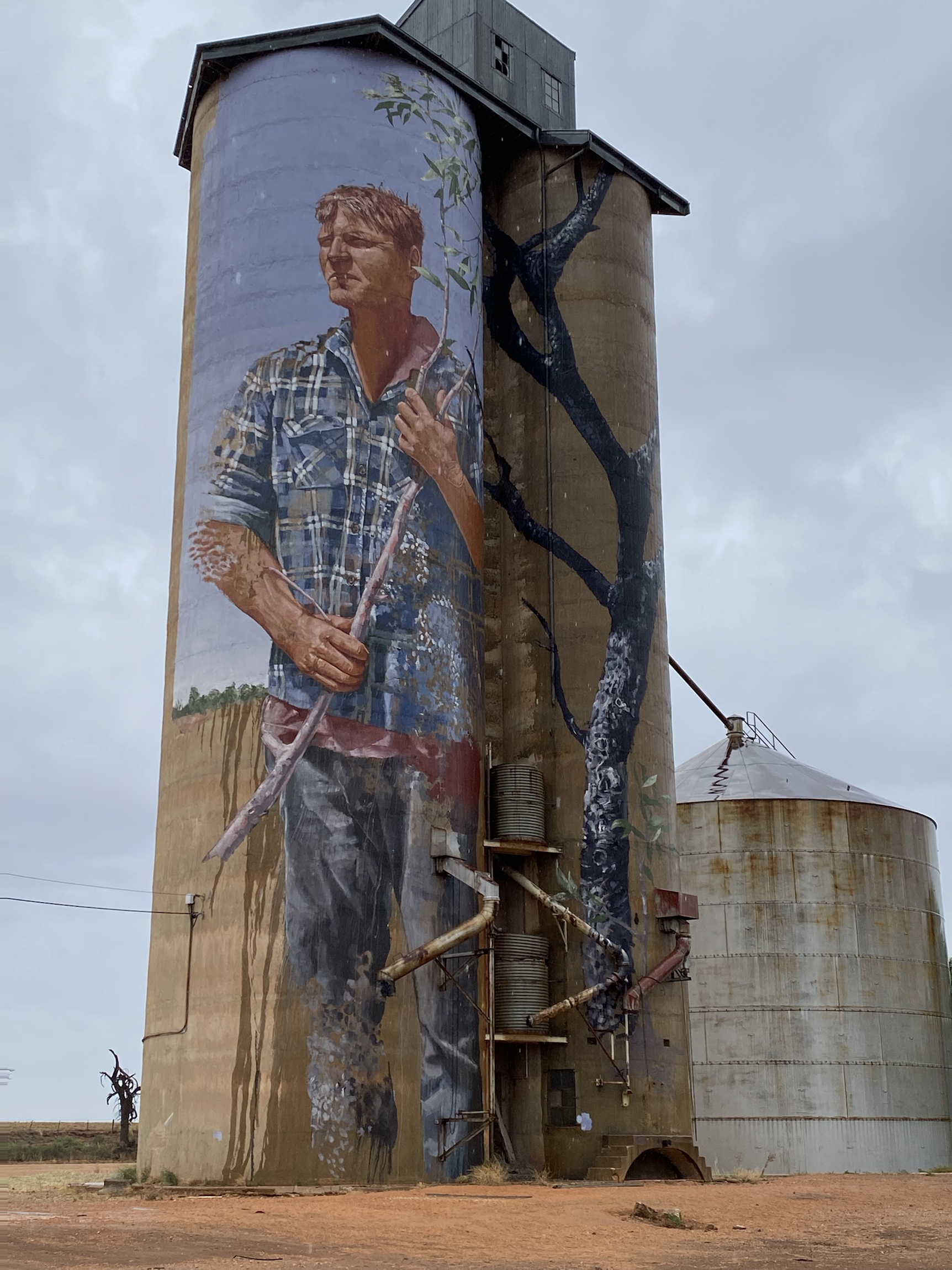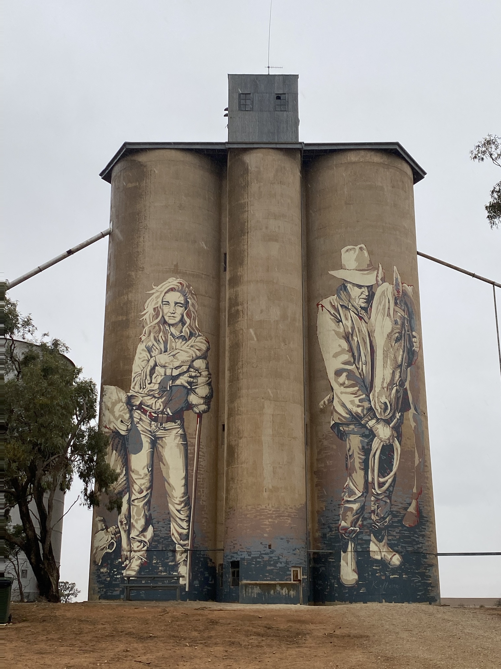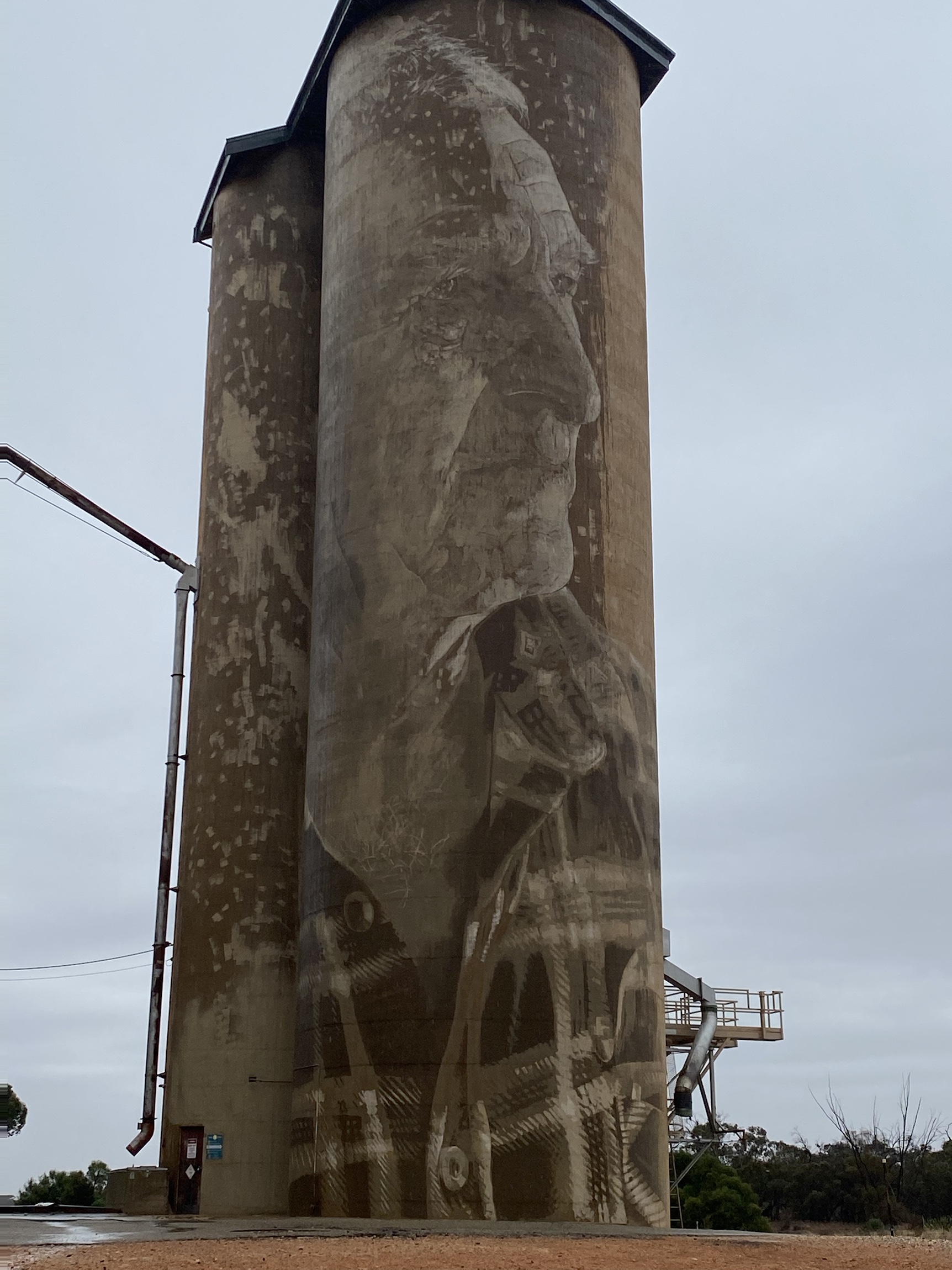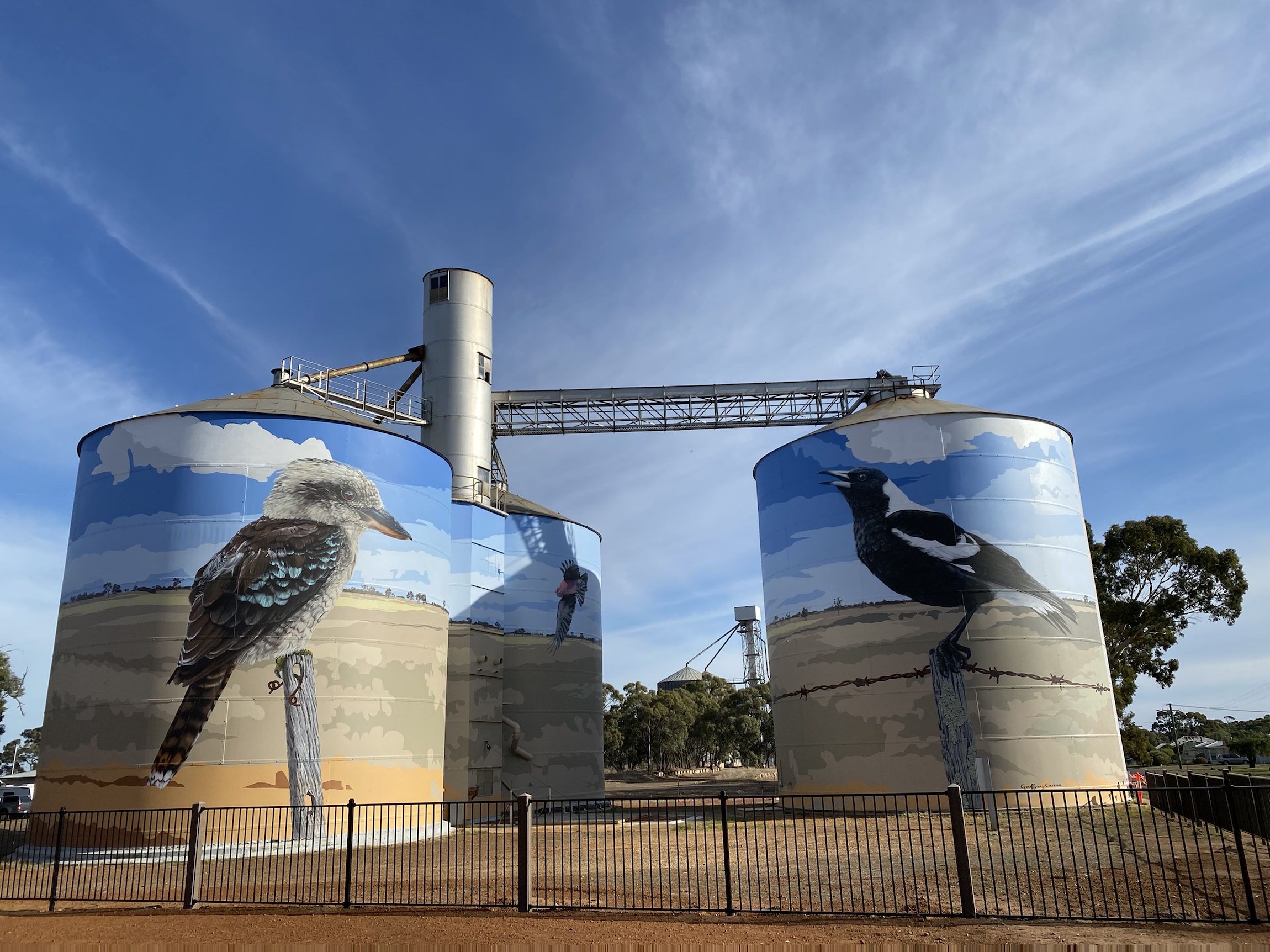 We were surprised that there was no cooked rotisserie chicken to be had in Halls Gap. It seems such a basic take away food ( for us city slickers anyway) which would be so saleable to the huge camping population of Halls Gap. (At least three camping grounds.) A business opportunity for some enterprising person surely. But not our concern because we were departing for our true destination, the Art Silo trail and the Little Desert-The Wimmera-Mallee country.