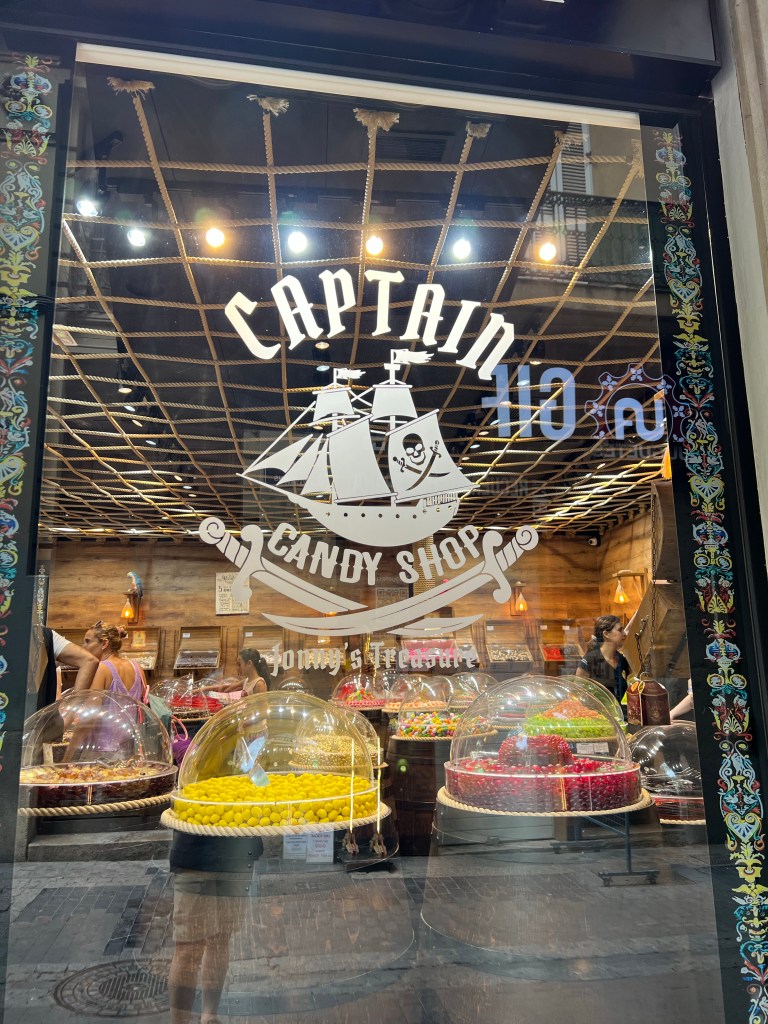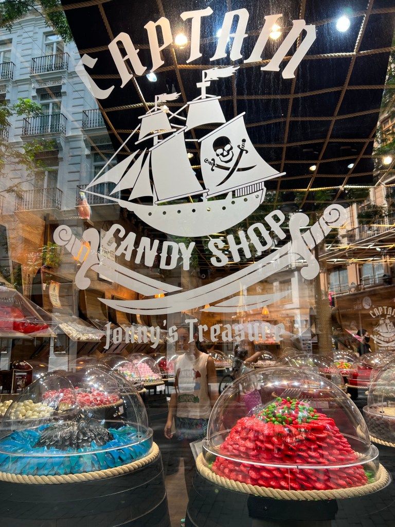 After that I continued down the Plaza del Rei towards the post office to buy a box in which I will post my excess baggage! The street had lovely trees and fancy shops but one really caught my eye was A Lolly shop.