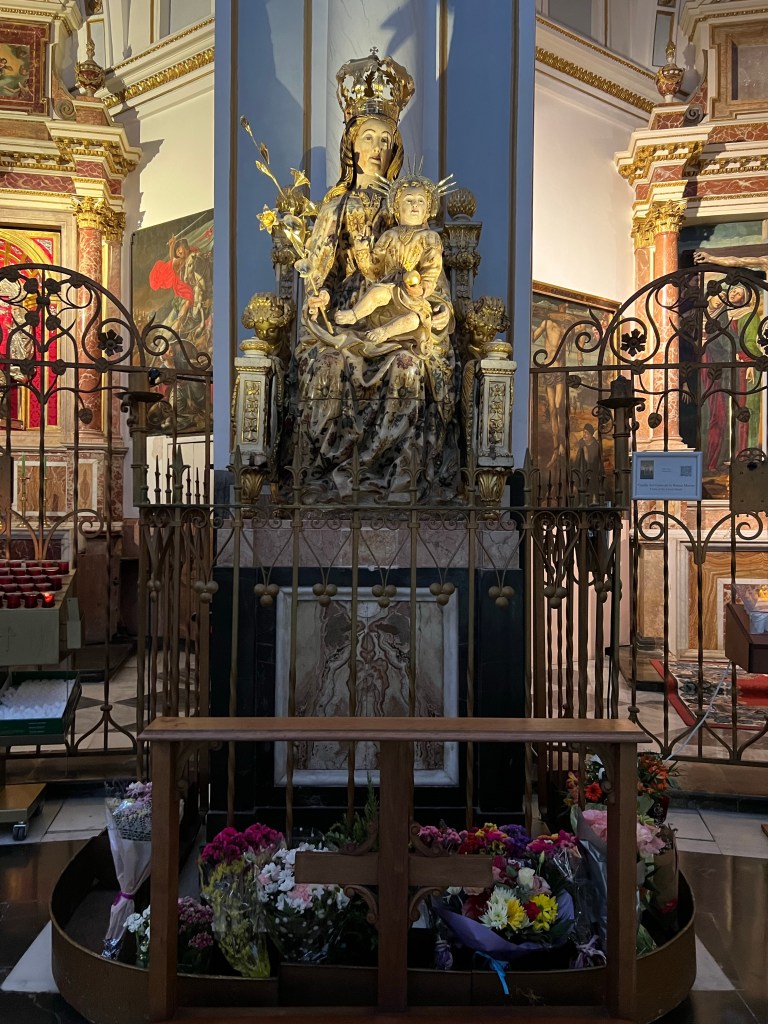 The transept of the church was quite unique in shape and had alabaster windows. Another feature was the virgin in the chair. Pregnant women come to pray for a safe delivery by walking around the church 9 times.