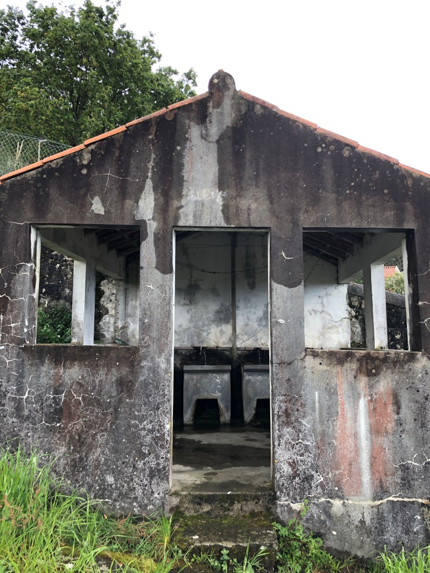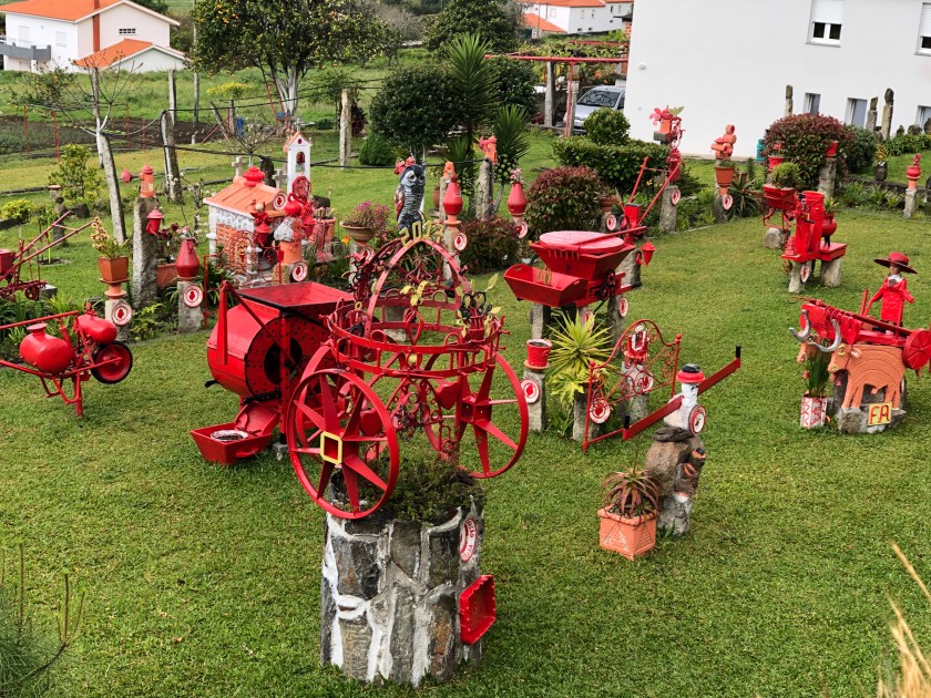 Unfortunately the sculpture park was rather disappointing. The Labrynth looked like a toilet block from outside( according to Anne) and when we walked to the centre it seemed it had been used for such too with lots of tissues and even a pair of underpants on the gravel. The next sculpture was a house squashed into a space between trees and another was a set of granite seats with writing we didn’t understand. This adventure was considered anticlimactic but we did see the promenade along the river and the University before we visited the Pazo de Cultura. Another curious place. There seemed to be an art gallery or exhibition space without a door!